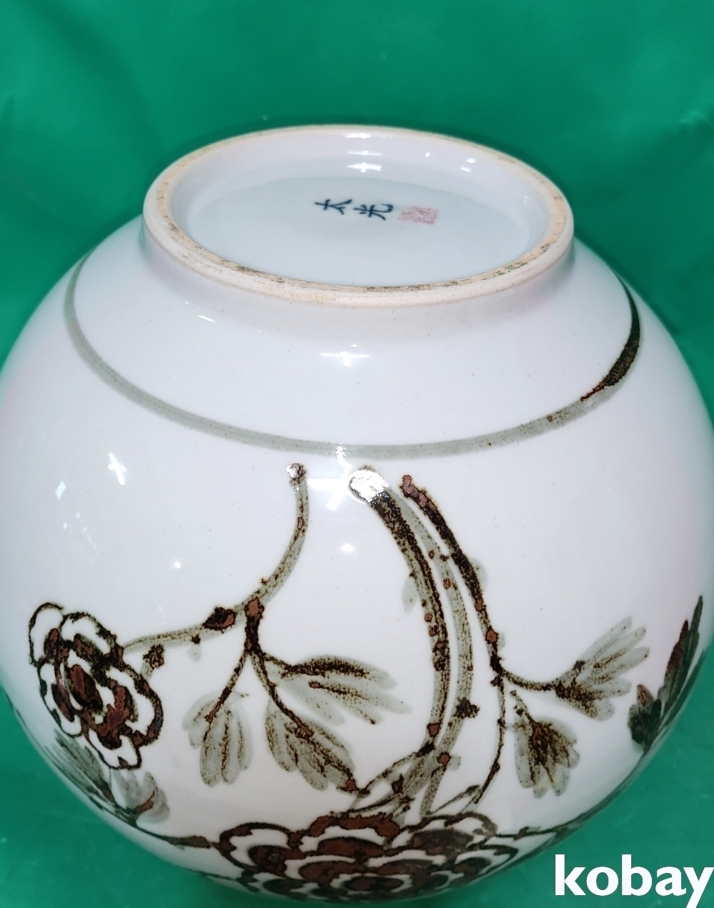 유명 도예가 태광 박수재 作 철화 목단 문양 항입니다,