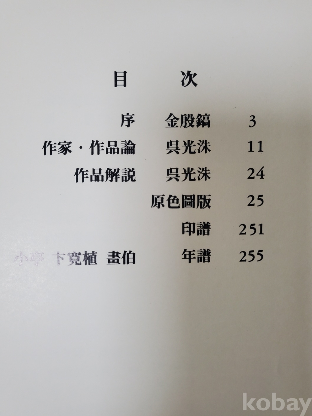 2. 목차 : 서문 / 작가 작품론 / 도판 / 작품 해설 / 원색도판 / 인보 / 연보