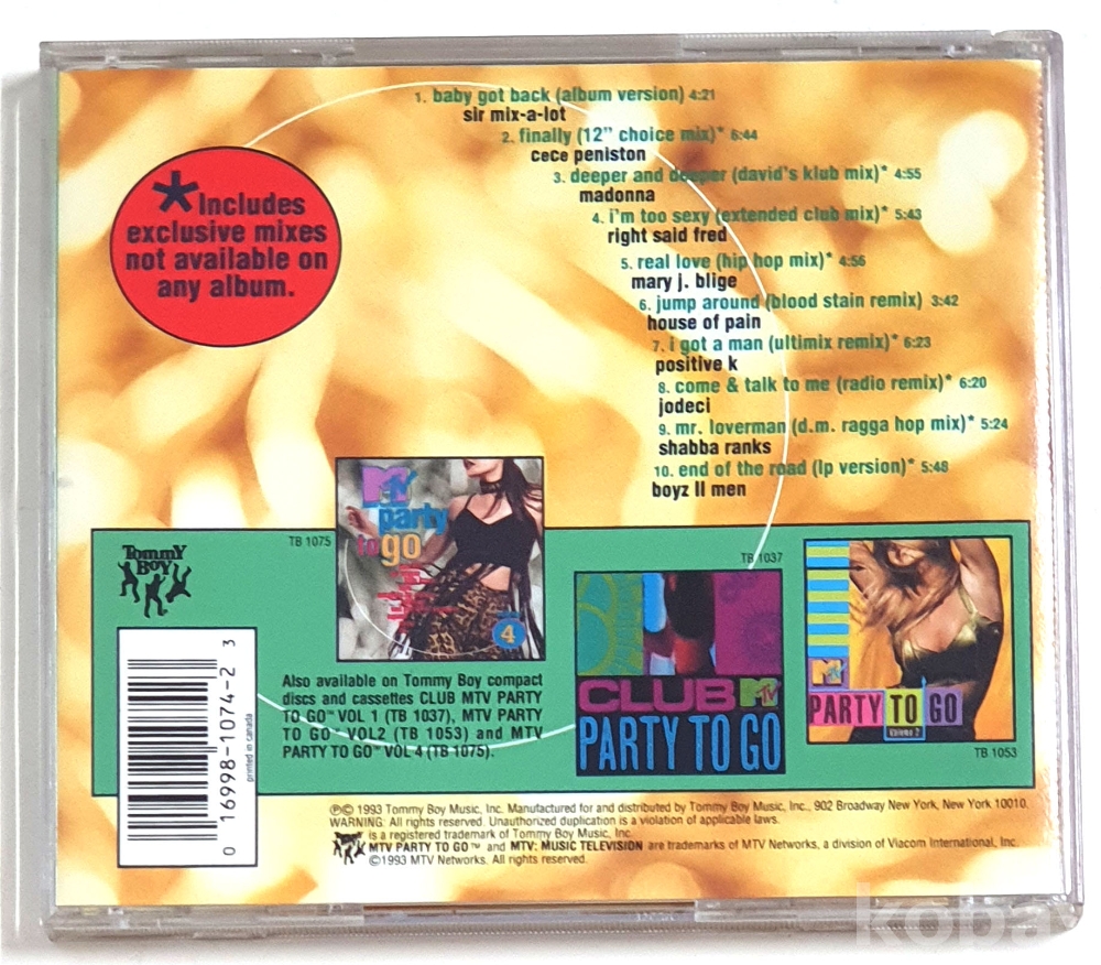물 품 명 | MTV Party to Go Volume 3 CD / 아티스트 : Mary J. bLIGE, Boys II Men, Madonna , House of Pain / 1993년 |