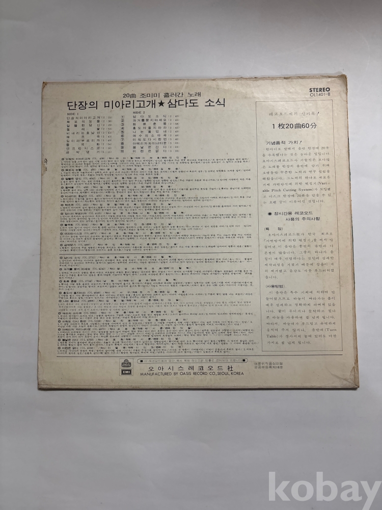 EX : 약간의 마모, 모서리 찢김 존재 음반상태