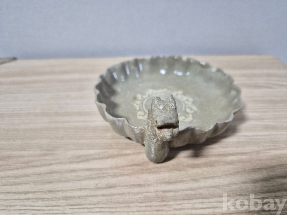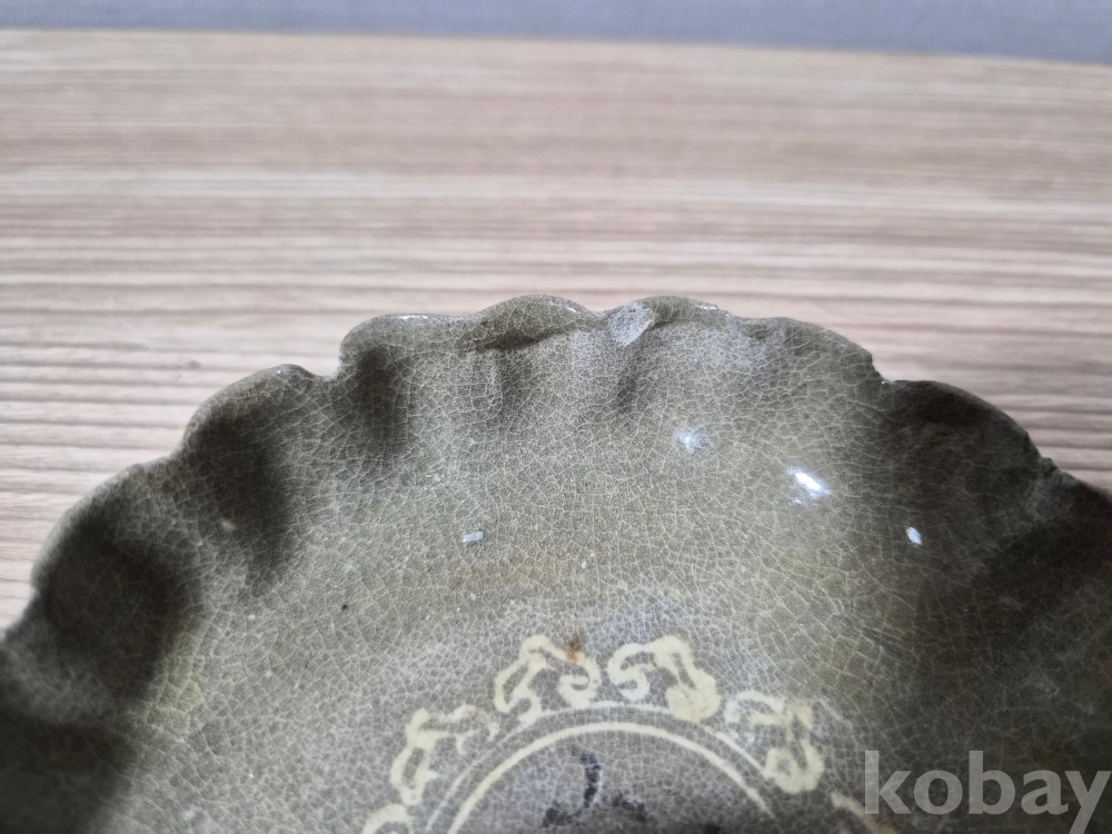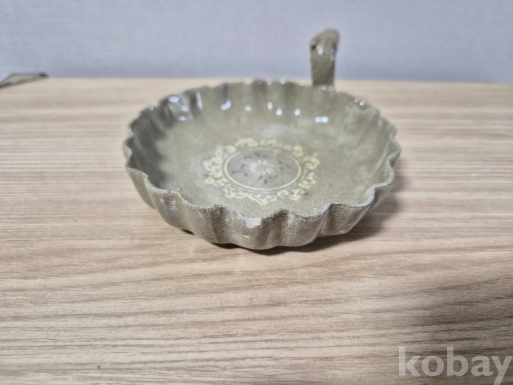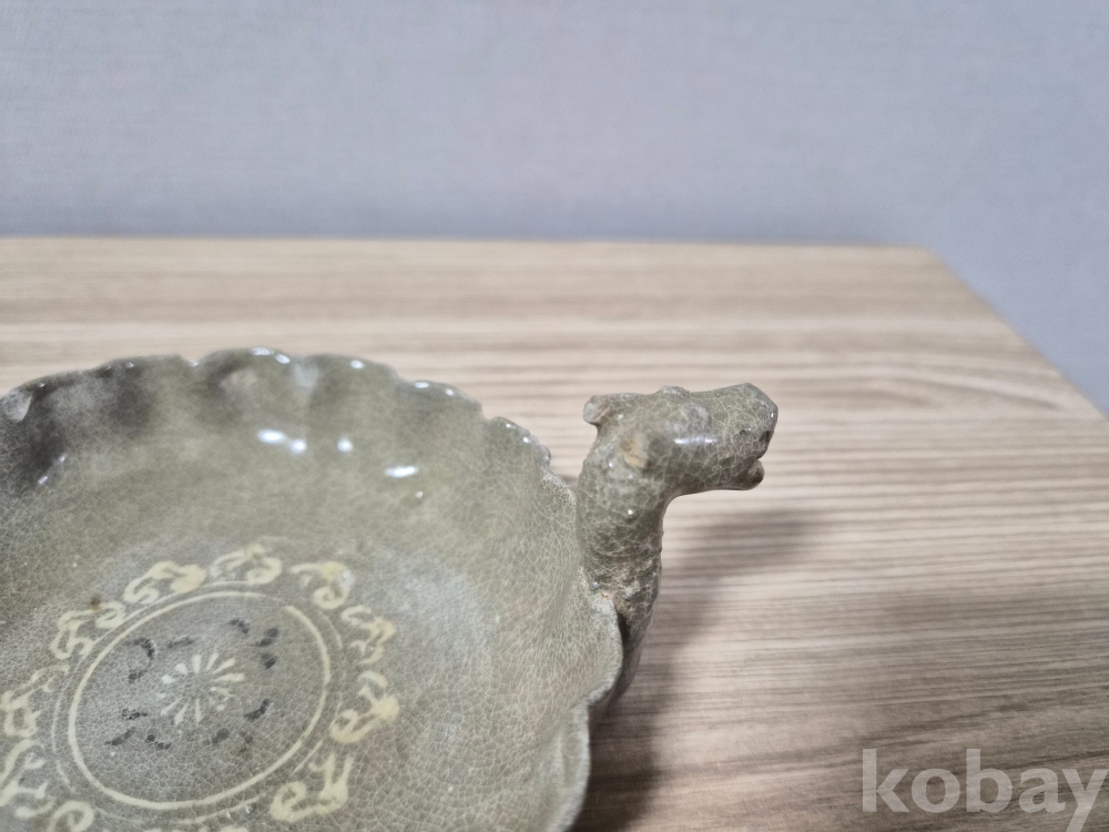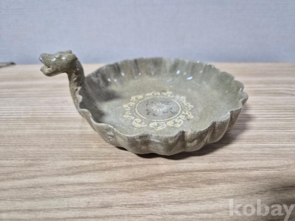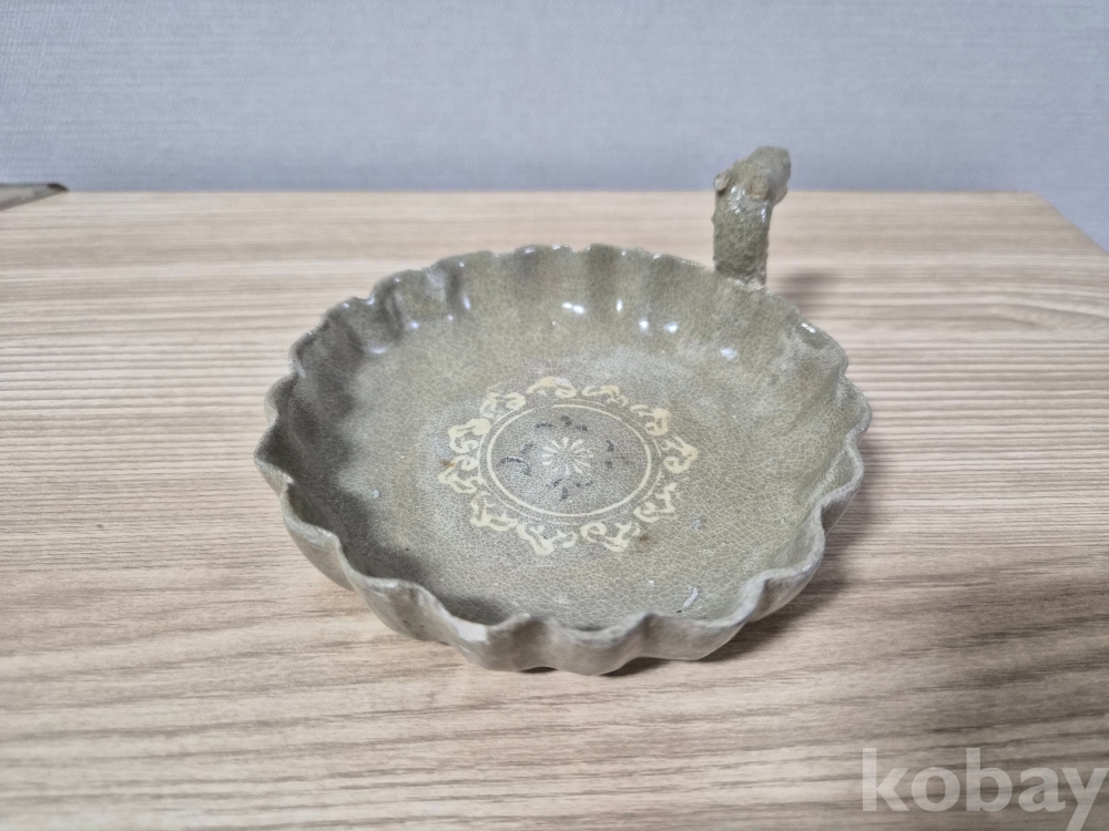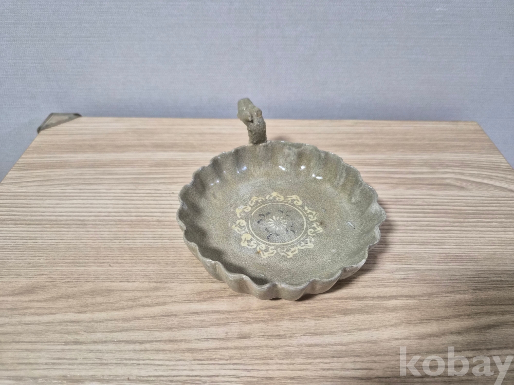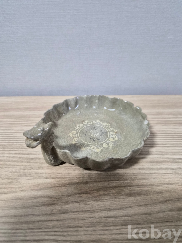 청자흑백상감 화형 용 접시입니다.