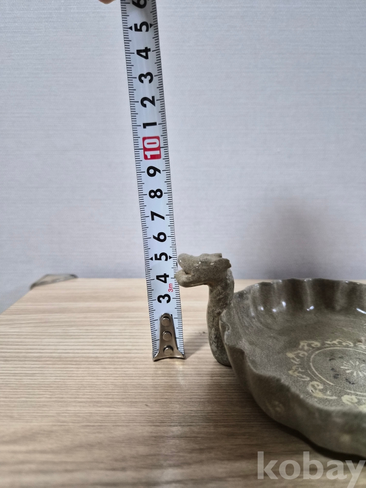 손잡이가 용두로되어있습니다 아주특이한 큰 접시네요 진위여부를 알수없어 저렴하게 올려봅니다 사진참조하시고 안목으로 신중한 응찰부탁드리며 진위여부로 반품은 정중히 사양하겠습니다 좋은감상하세요