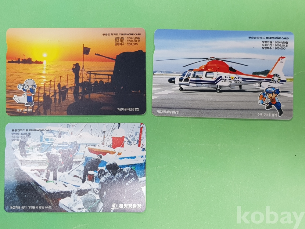 **** 해양경찰청 홍보 전화카드/수색 구조용 헬기,해상 경비활동,폭설피해 방지 대민봉사 활동
