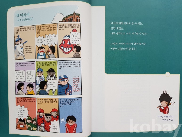 설명: 이 책은 미국 메이저리그를 직관하면서 최훈 카툰 작가가 프로야구 만화 카툰집입니다.