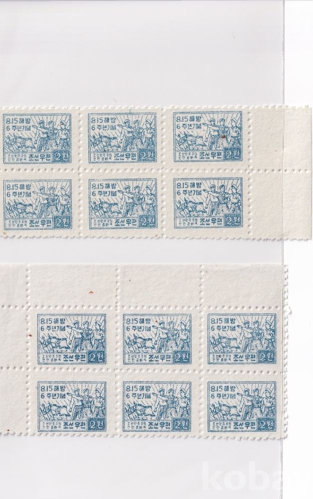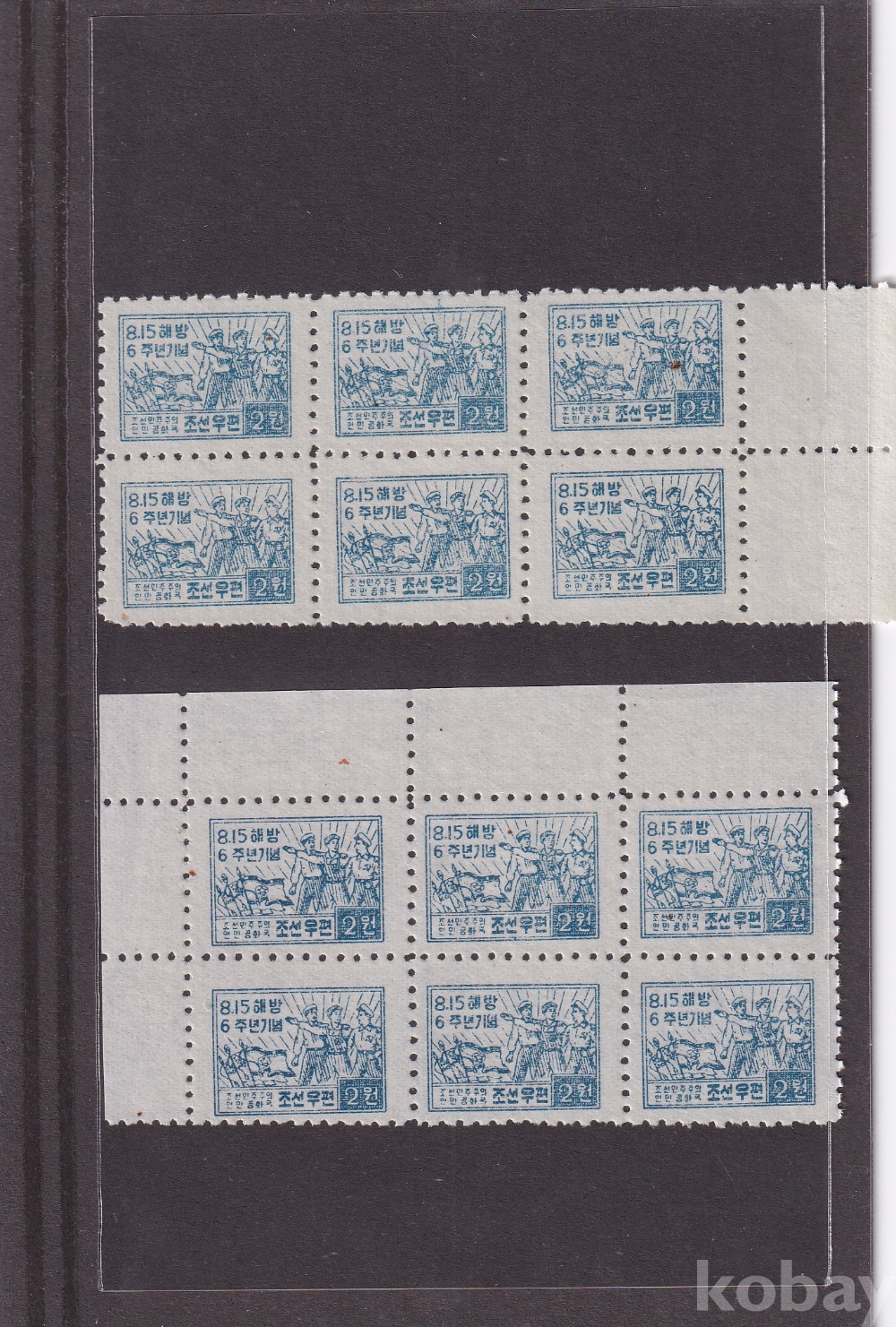 [윗동네 미사용 우표 모음展] - 8.15해방 6주년 기념 조선 및 중국 병사 2원(6장) 블럭 2장 일괄