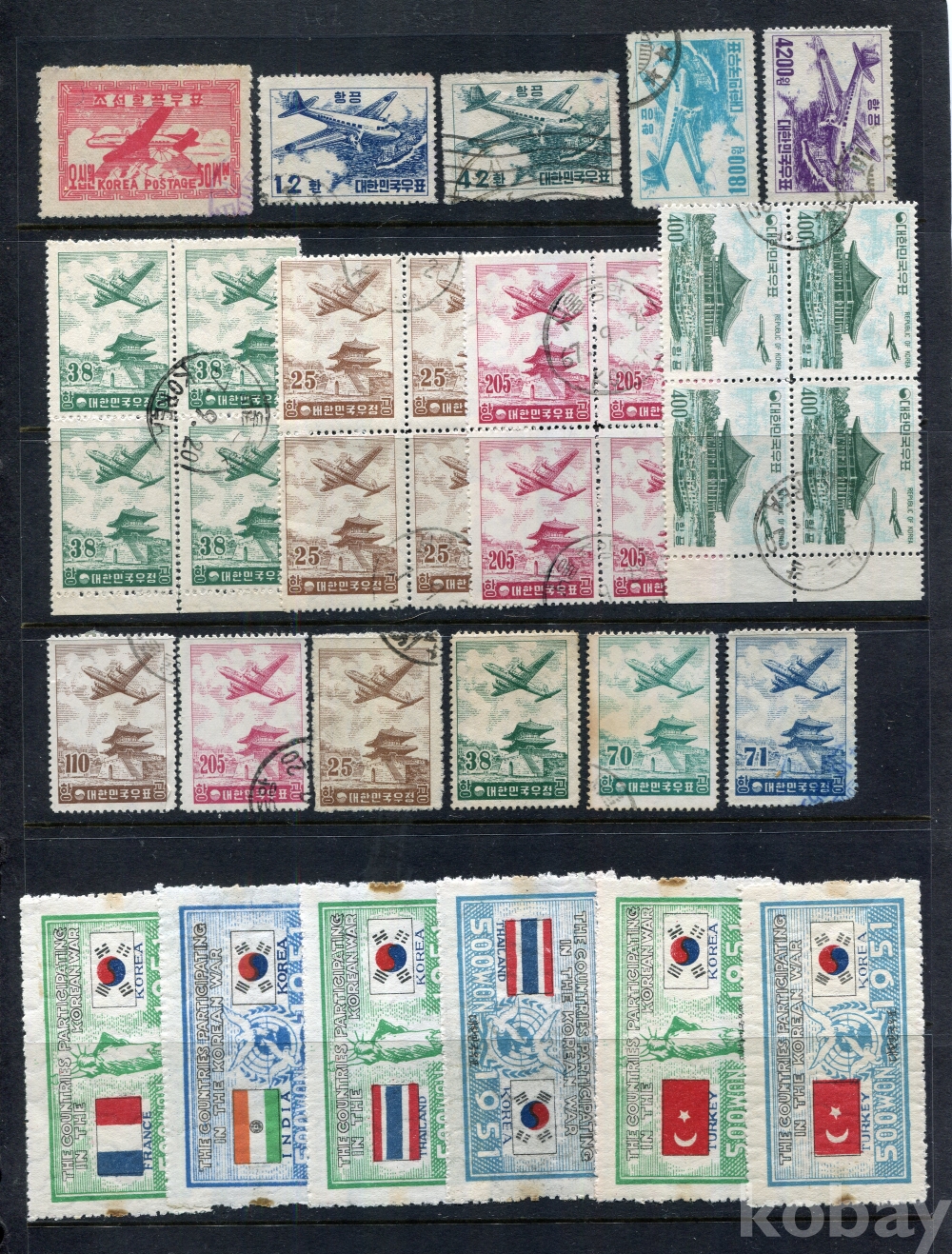 - [우표] 미사용 6.25참전 6매 및 사용제 항공우표모음 (6.25참전 미사용 6매 : 모서리에 흠집있음, 뒷면은 MNH 힌지자국없음) : 이미지 참조하세요