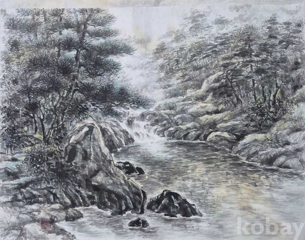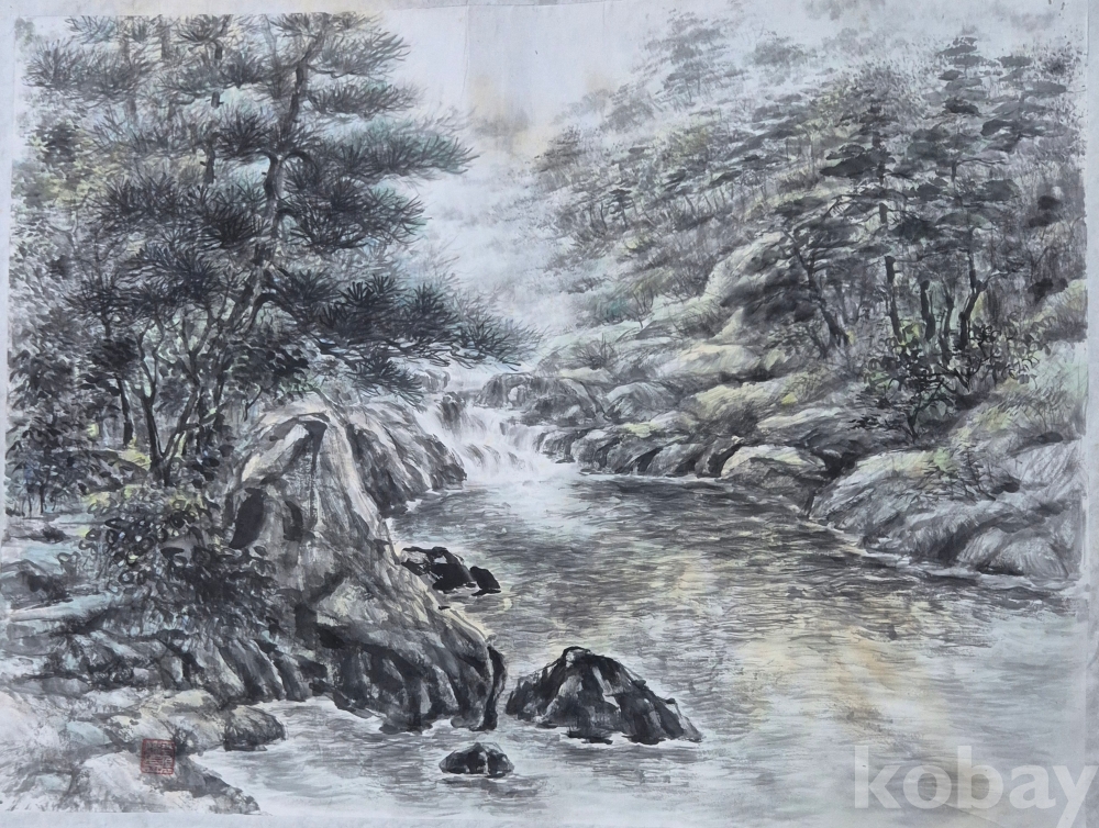 셈세하게 잘 그려진 멋진 산수화로 상당한 수준의 화가분 작품 추정되오니 작품 이미지상 수결 및 낙관'등