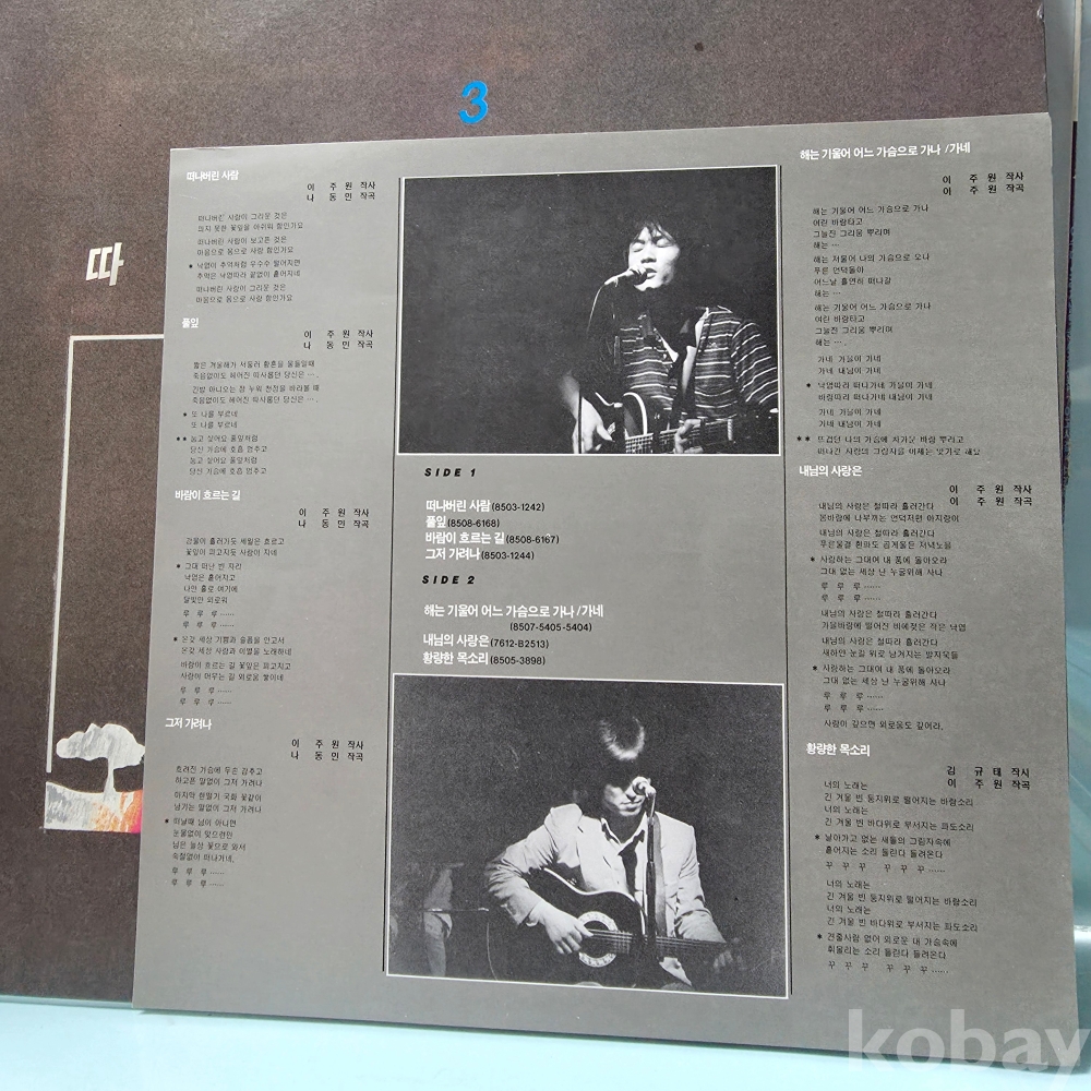 상품 설명 | Side A 1. 떠나버린 사람 2. 풀잎 3. 바람이 흐르는 길 4. 그저 가려나 Side B 1. 해는 기울어 어느 가슴으로 가나 / 가네 2. 내님의 사랑은 3. 황량한 목소리 4. 서로 믿는 우리마음 |