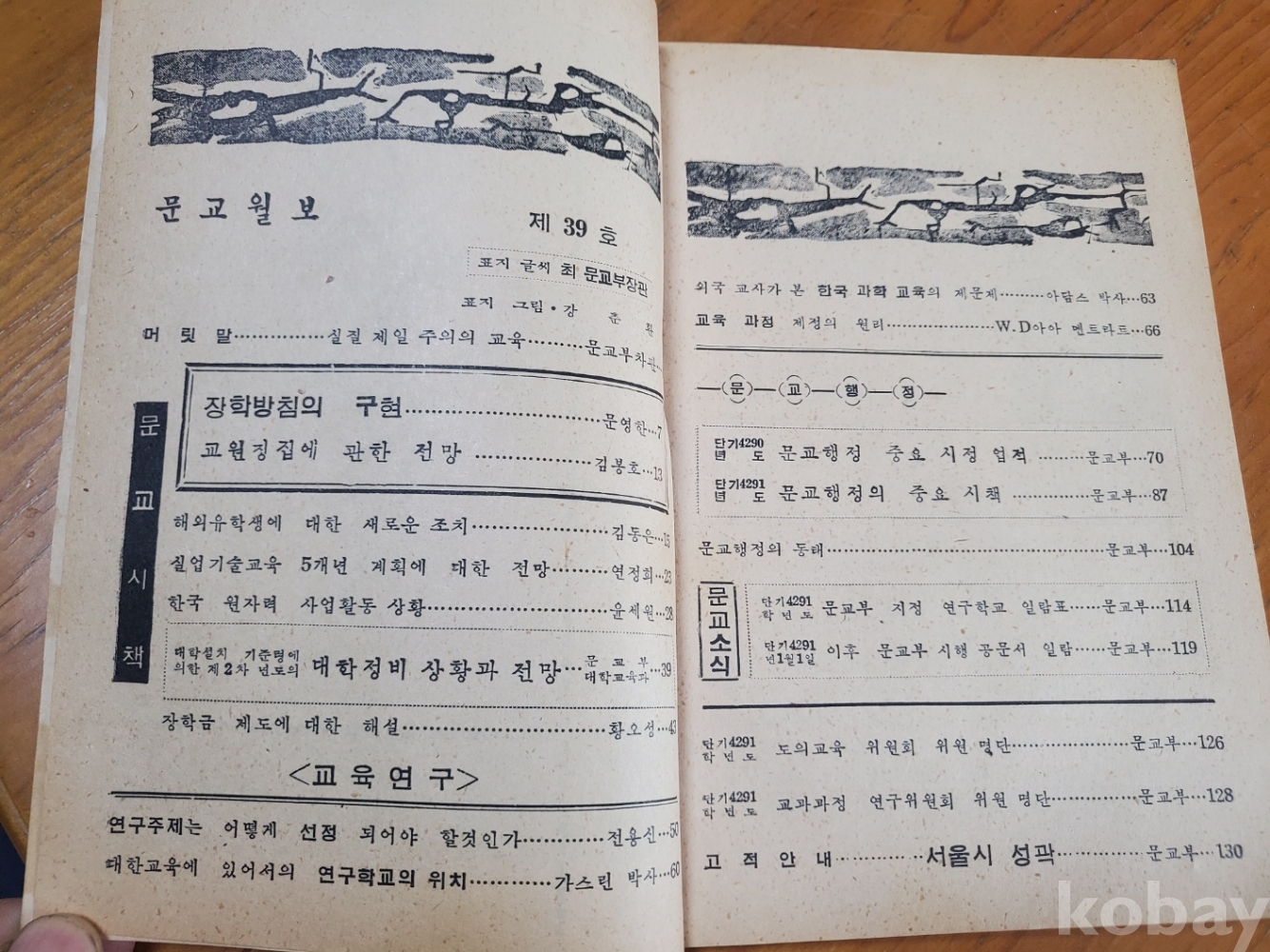 1. 문교월보 제39호, 문교부, 1957년, 131쪽, 상태 상, 사진 참조