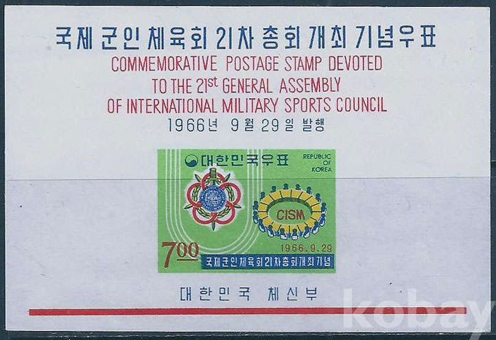 (한국시트-791)1966년21차국제군인체육총회시트(미사용제)-MNH, VF