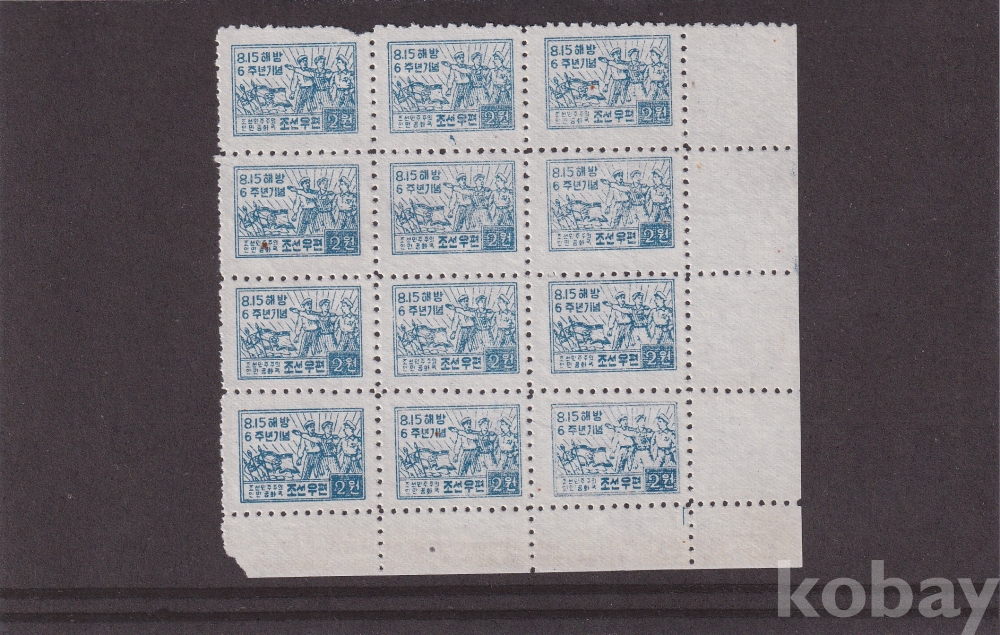 [윗동네 미사용 우표 모음展] - 8.15해방 6주년 기념 조선 및 중국 병사 2원(12장) 블럭