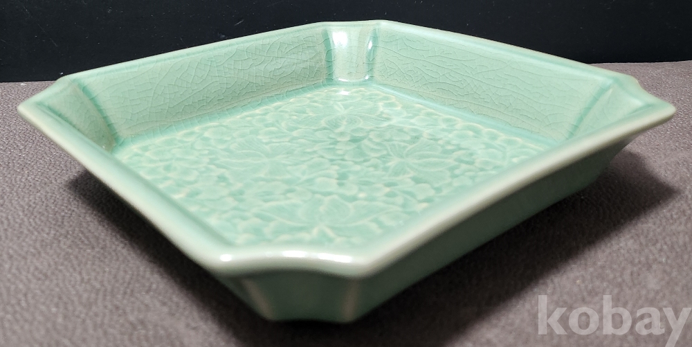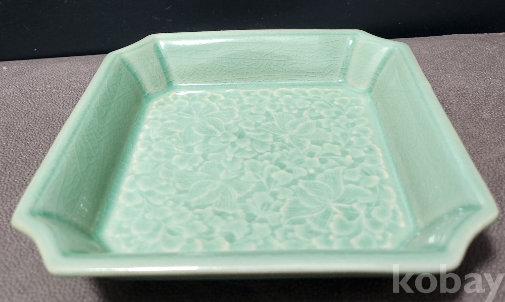 청자음각화훼문사각접시 靑瓷陰刻花卉紋四角楪匙