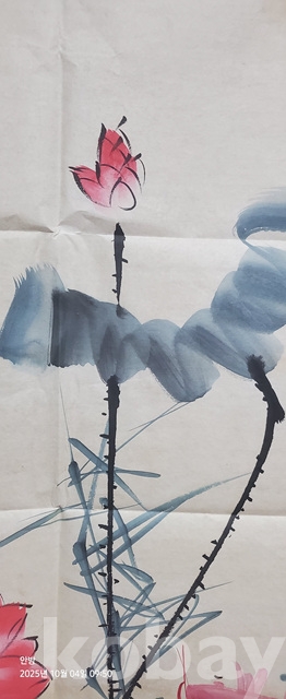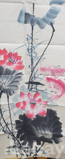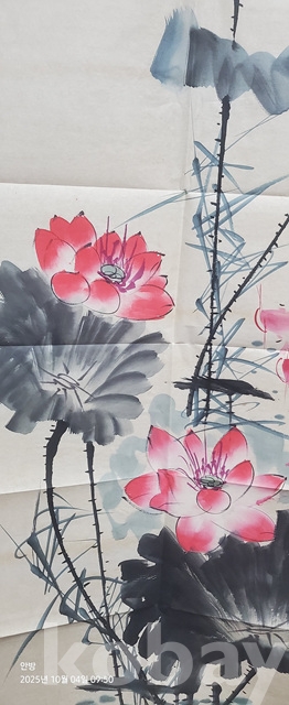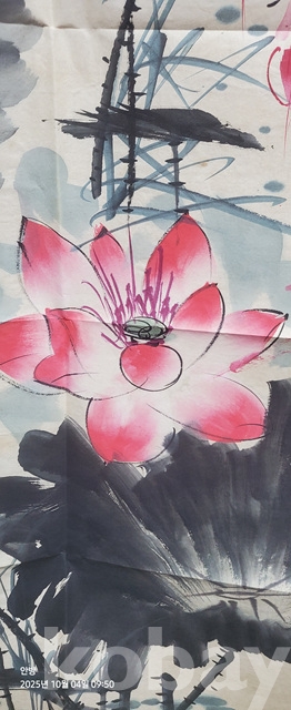 h-79.중국유명화가 장대천의연화 (실체그린그림.미감정)