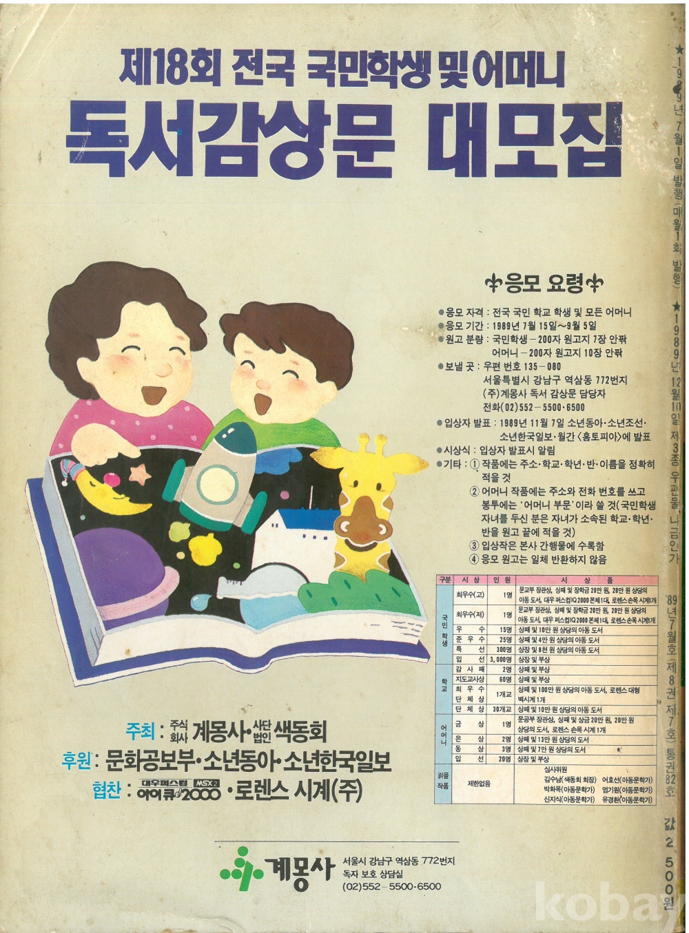 월간 보물섬 89년7월 호 둘리 도서 만화 잡지 책상태 최상급