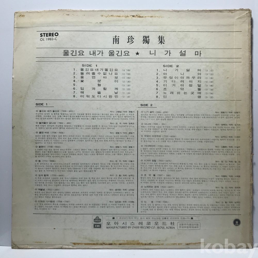 LP 35,050-53 남진 - 울긴요 내가 울긴요 . ` 78 오아시스 자켓 EX- 알판 EX