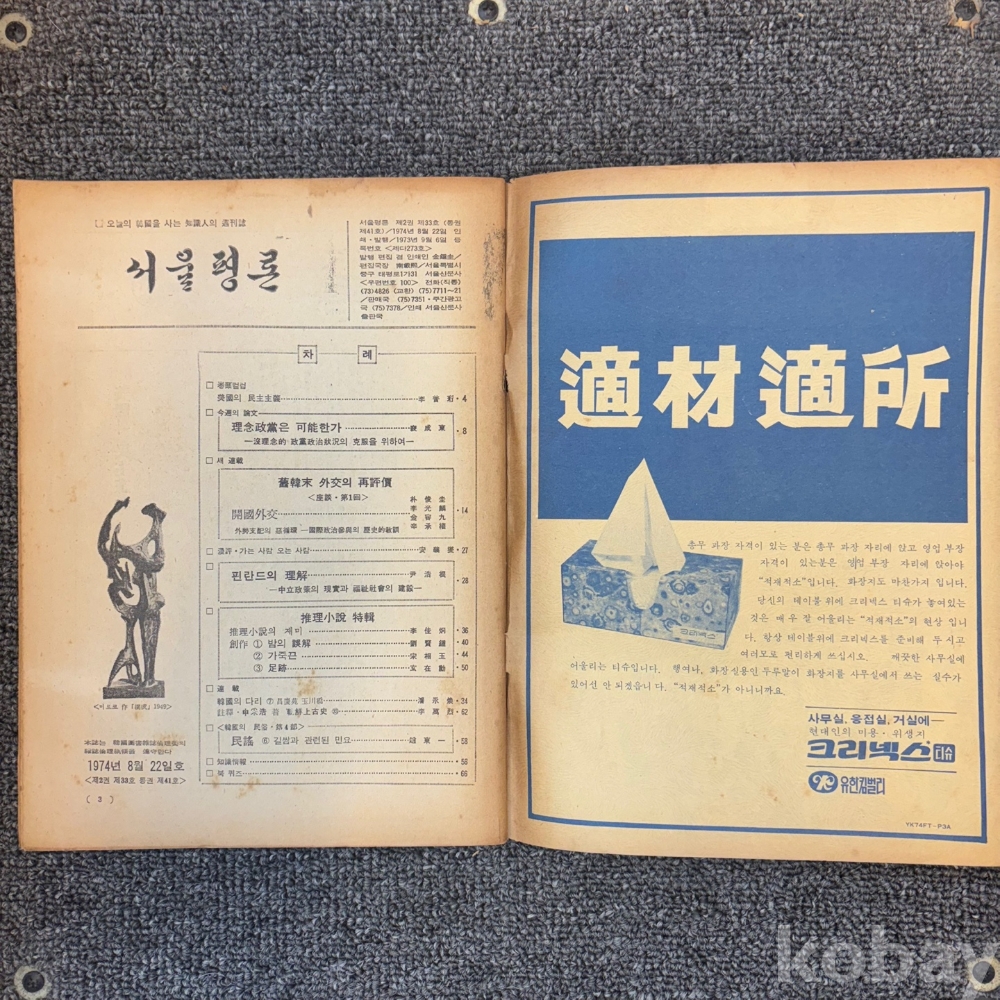 [한국현대사, 제3공화국, 대한제국, 이념정당] 서울신문사, <서울평론 1974년 8월 22일 제41호>, p. 66. 상태 중급(사진참조)