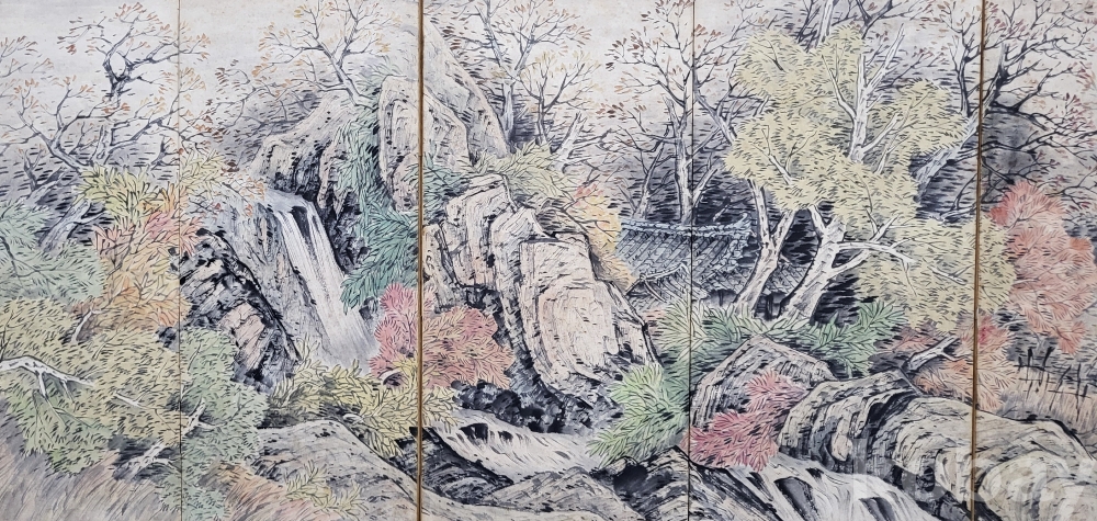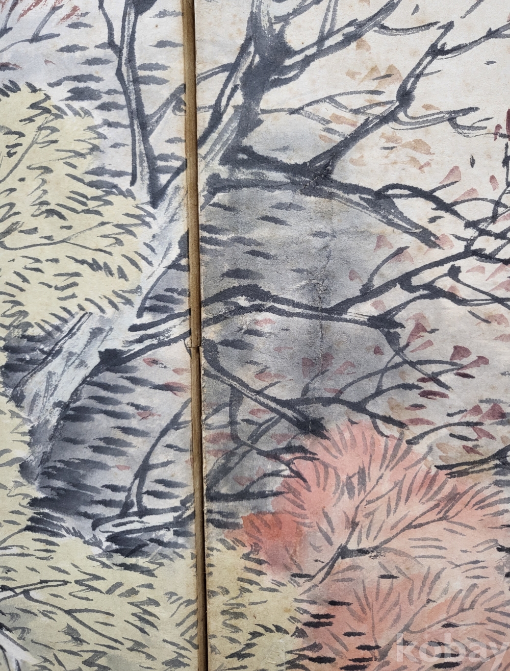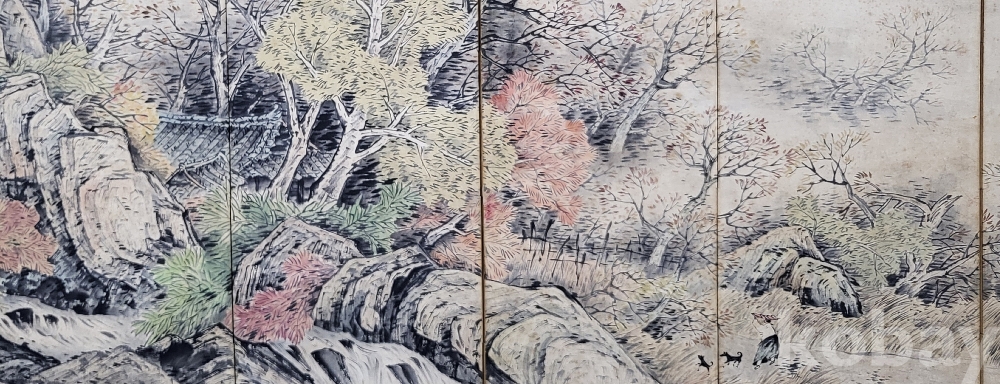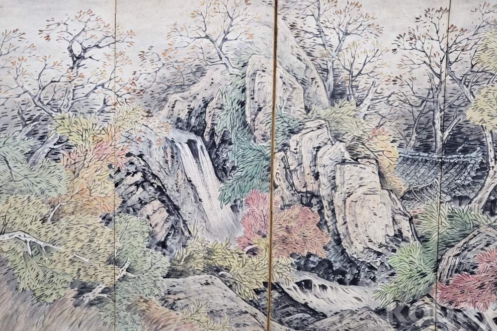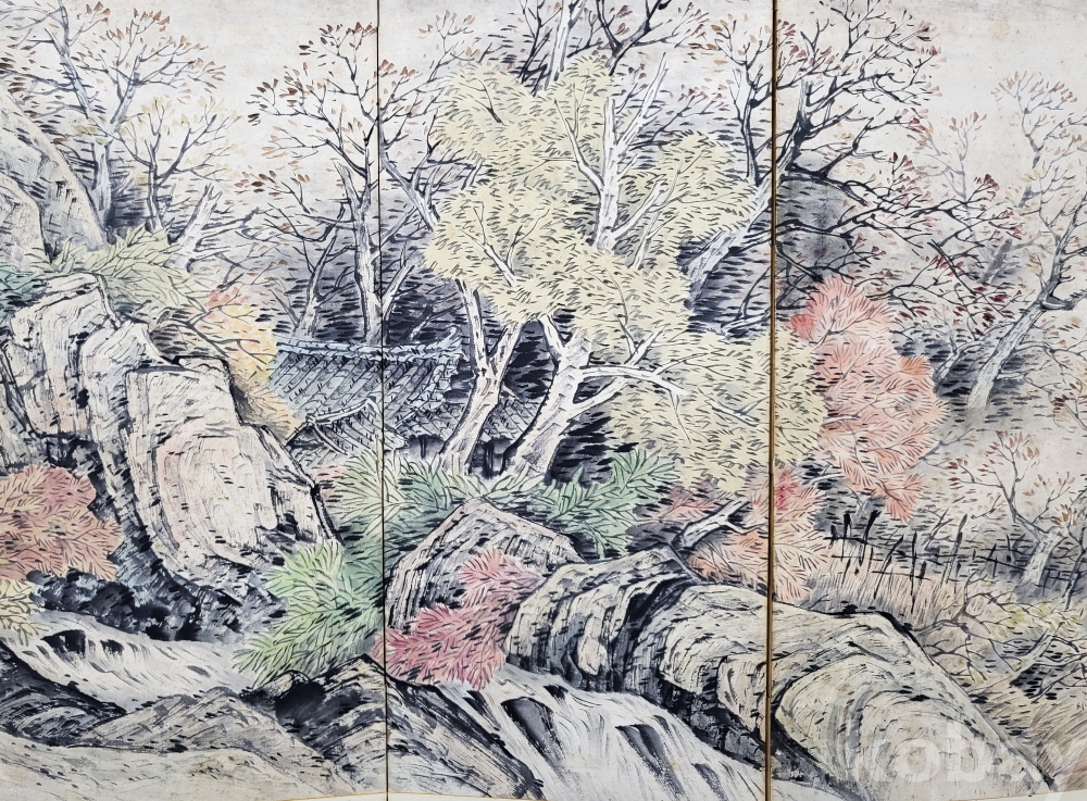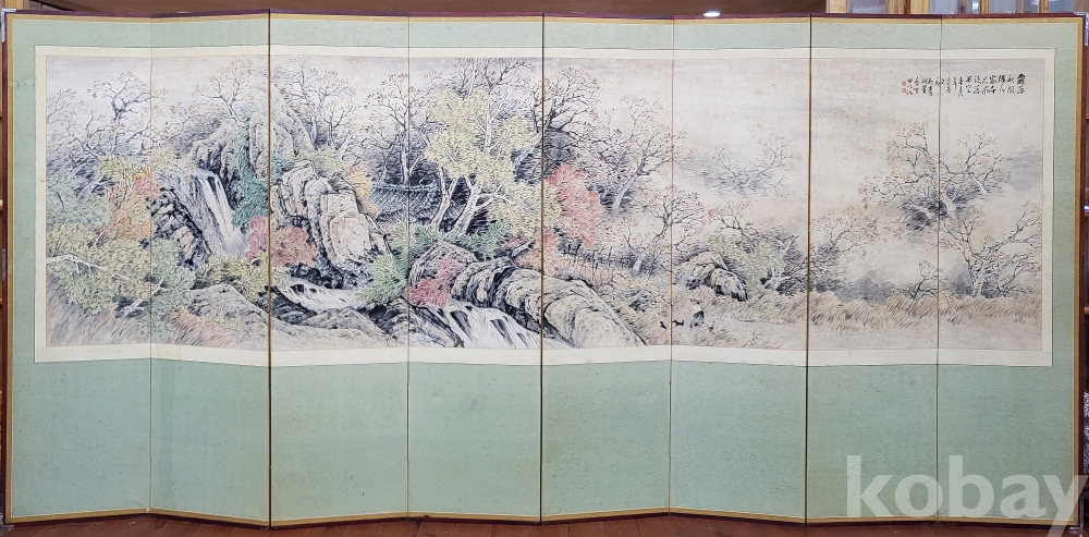 전정[田丁] 박항환[朴亢煥] 1971년도 내소사[來蘇寺] 가을풍경[秋風景] 8곡 일지 병풍 作品