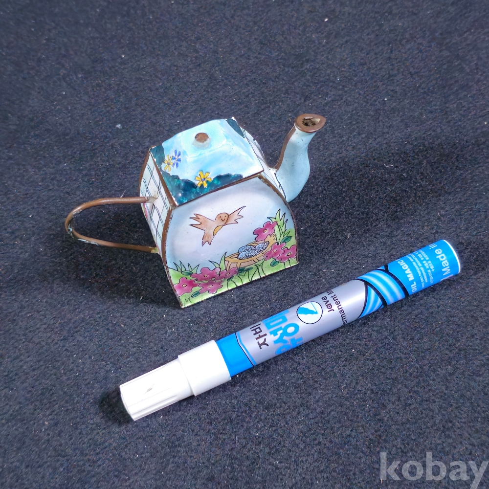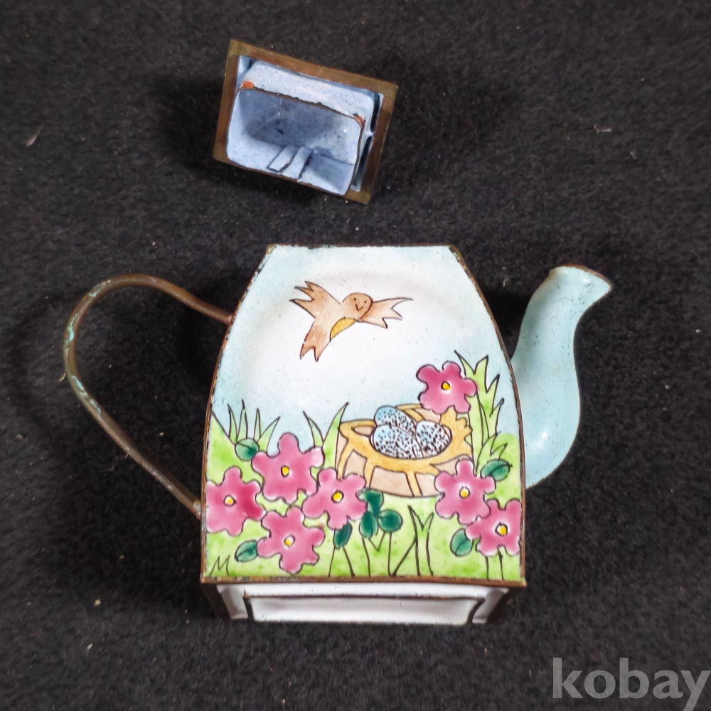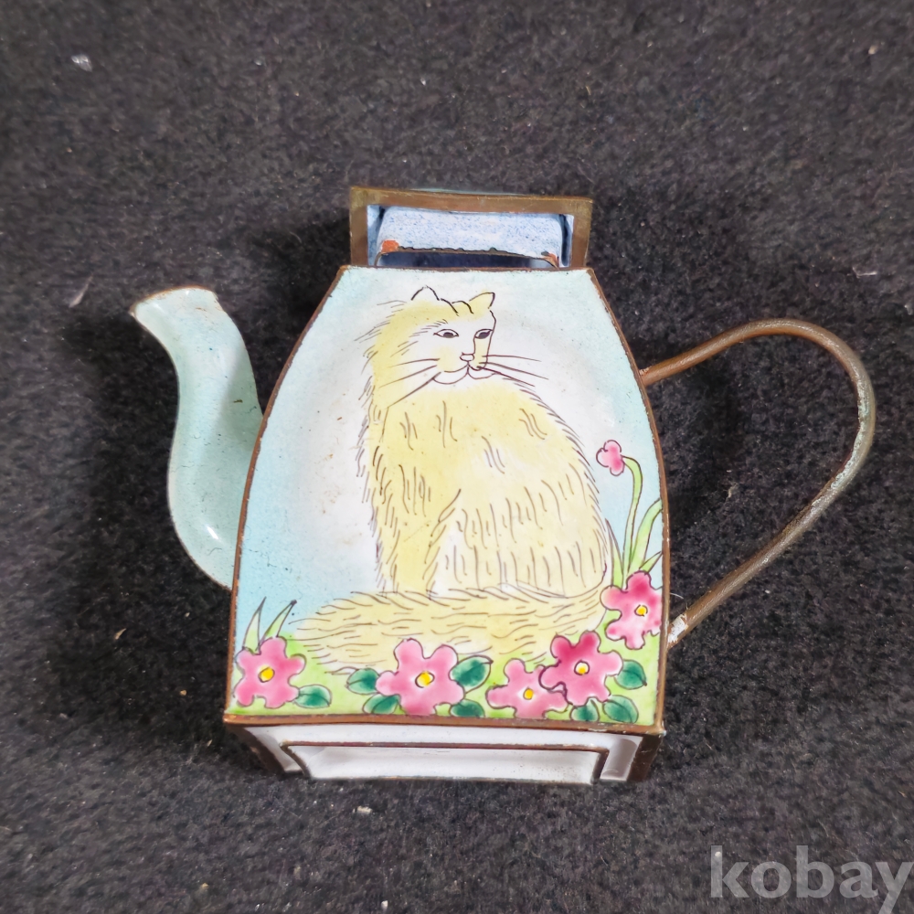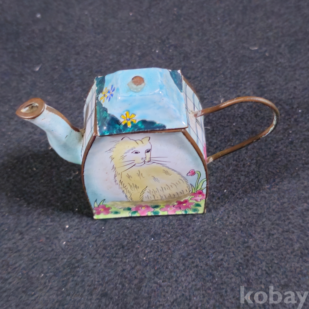(((인테리어소품/미니어처))) 오래전 고양이와 새그림이 이쁜 비교적 자그마한 금속 주전자