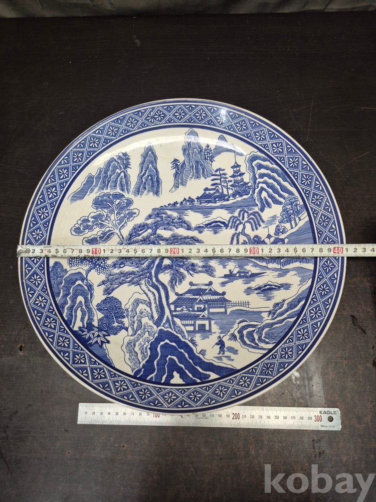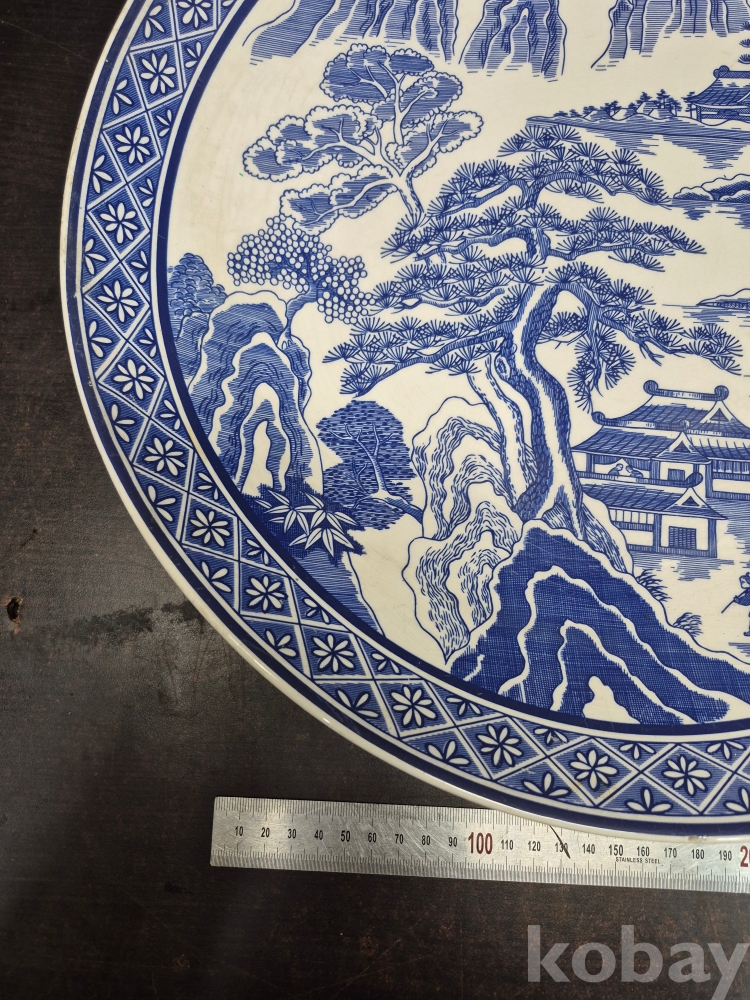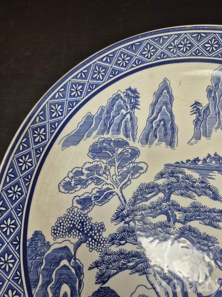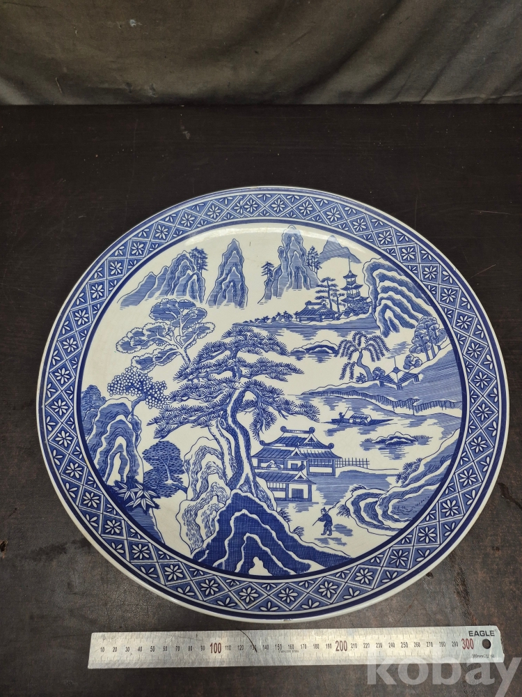 메이드 인 코리아 친흥 도자기 코발트 블루로 만들어진 대형 접시 그미은 산수풍경화 입니다 41*41*5.5