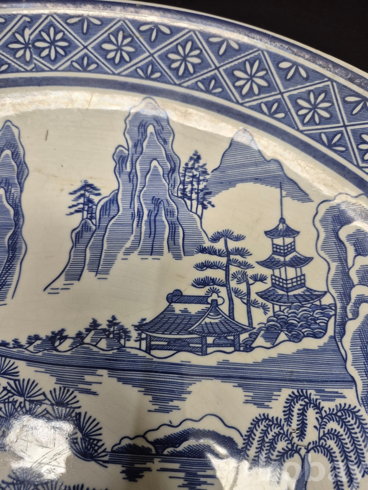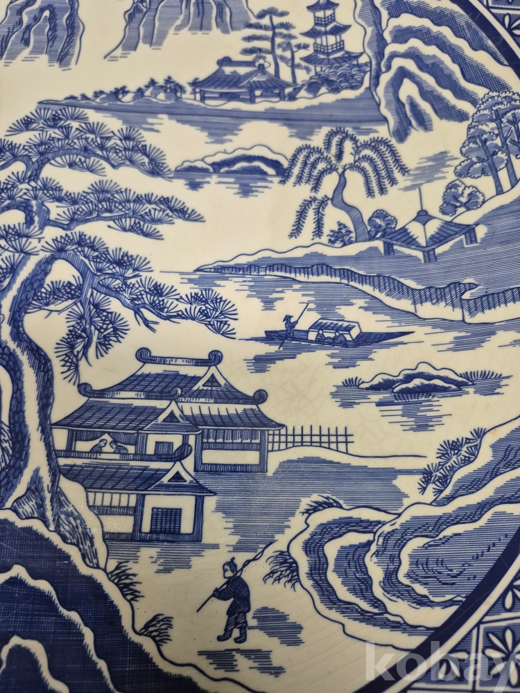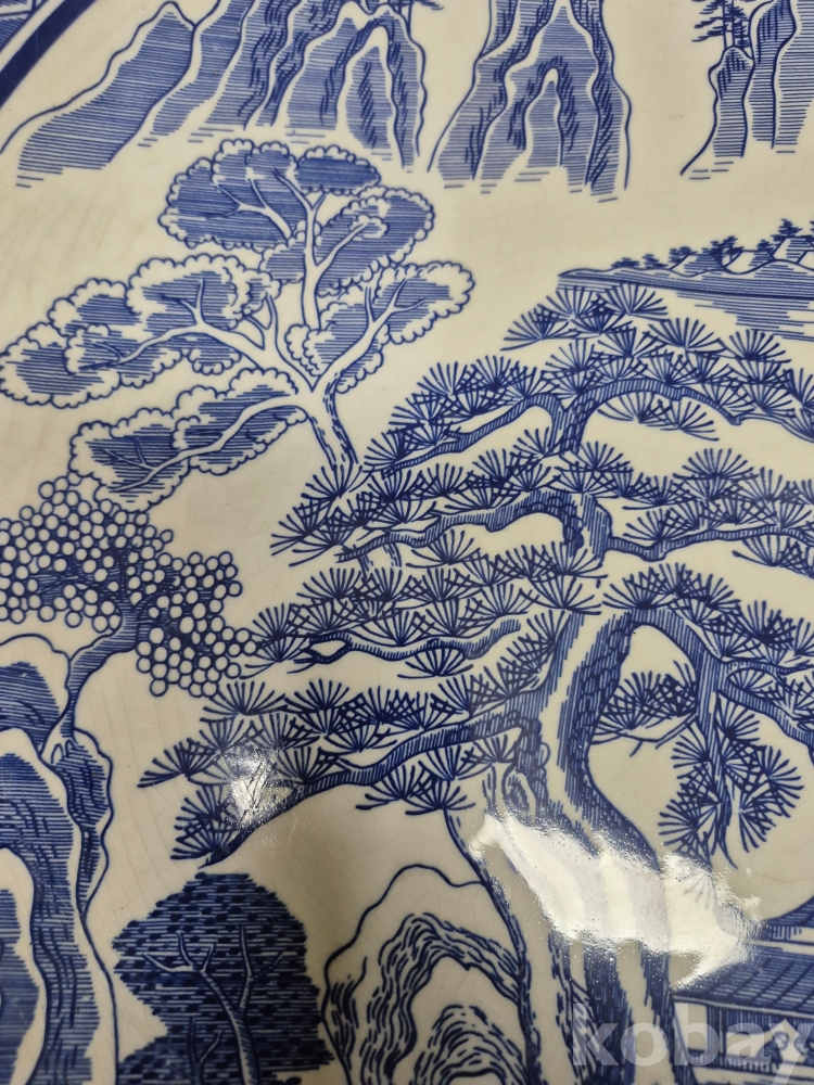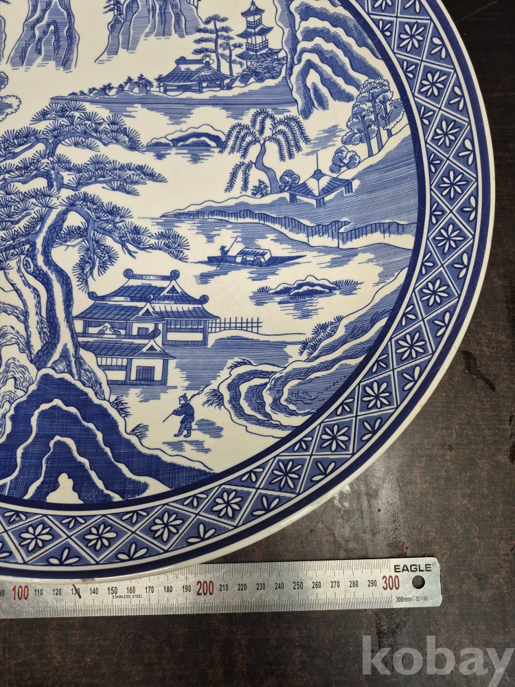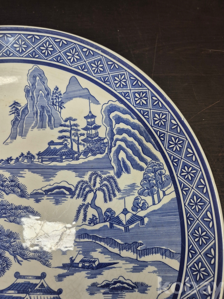 메이드 인 코리아 친흥 도자기 코발트 블루로 만들어진 대형 접시 그미은 산수풍경화 입니다 41*41*5.5