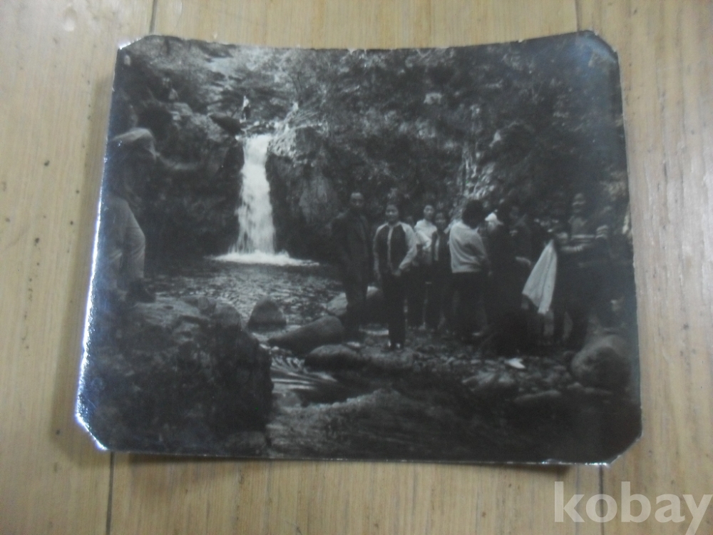 1232h)작은사진-60년대 폭포 앞에서 여학생들 수학여행 사진.