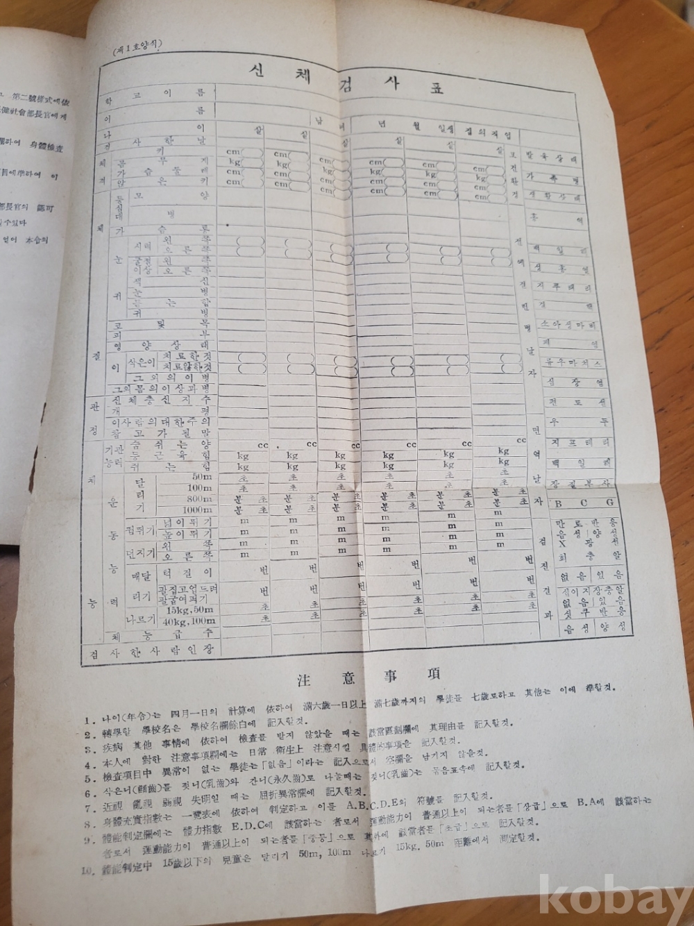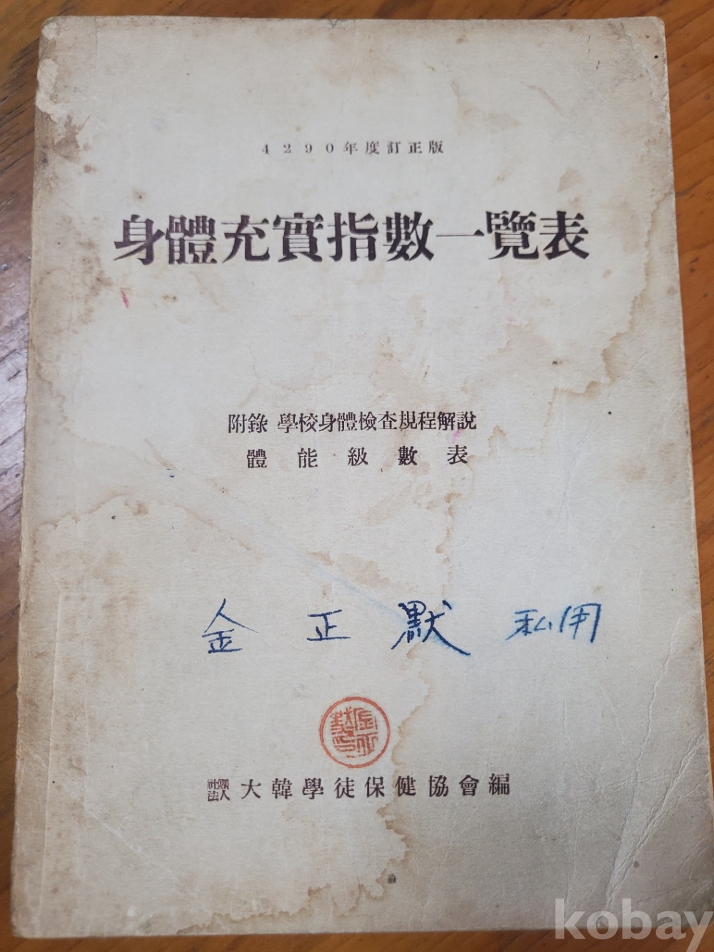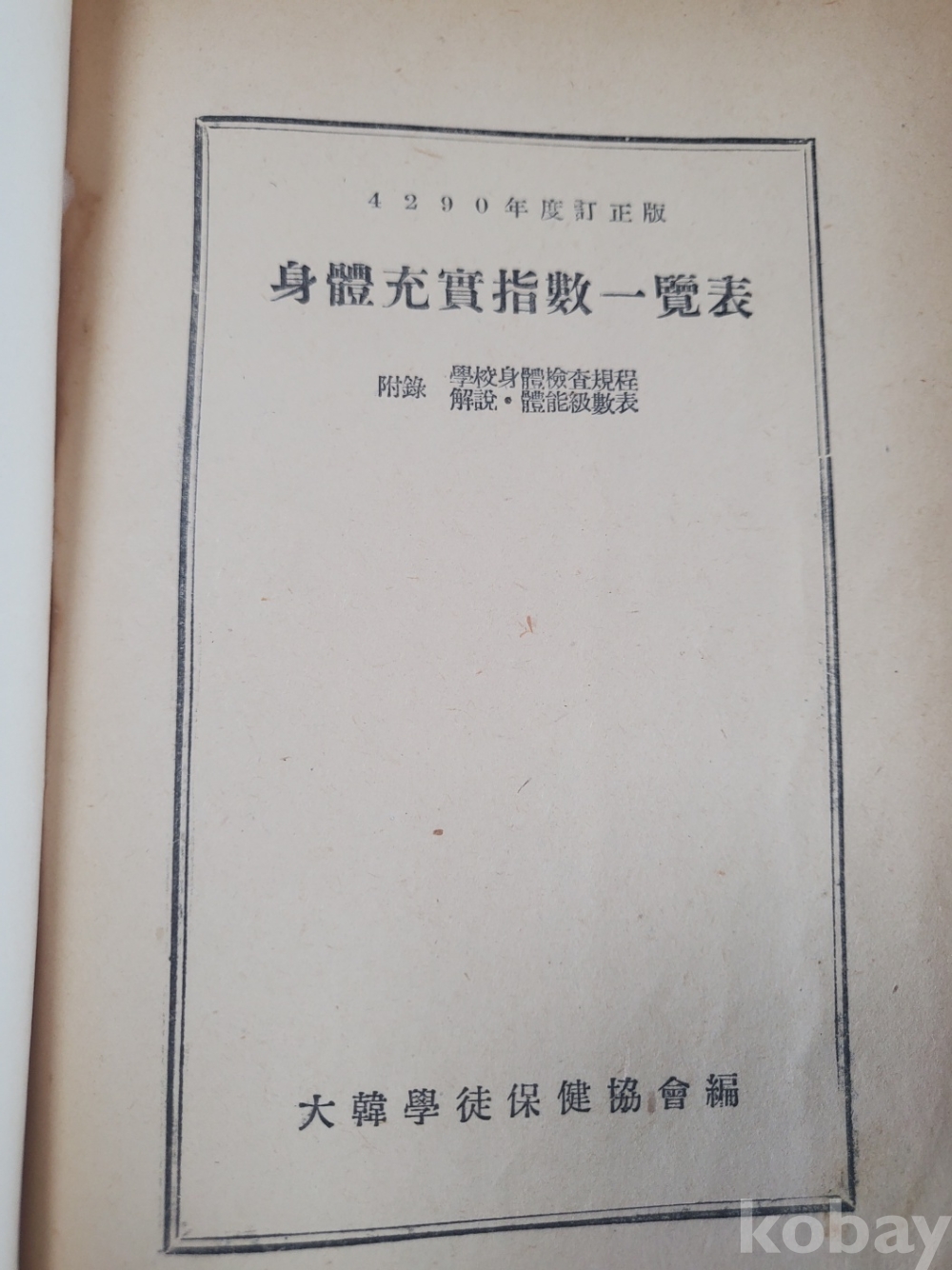 1. 신체충실지수일람표, 대한학도보건협회 편, 1957년, 228쪽, 상태 상, 사진 참조