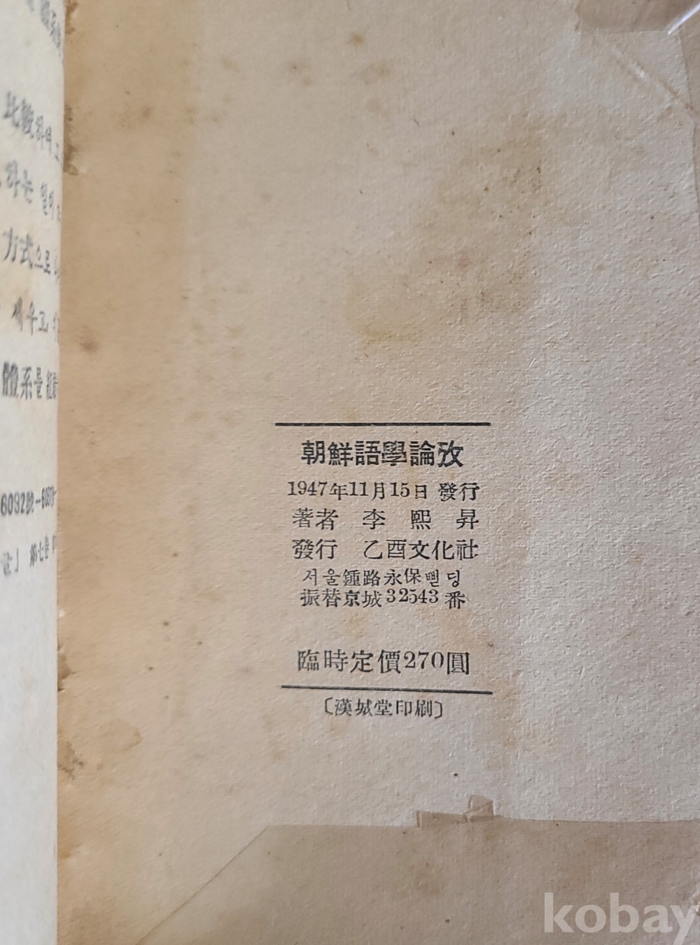 이희승 <조선어학논고> 초판본