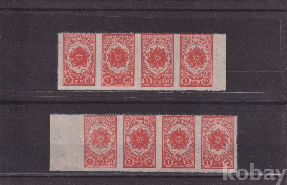 [윗동네 미사용 우표 모음展] - 국기 훈장 1원 (4장) 가로 페어 2장 일괄