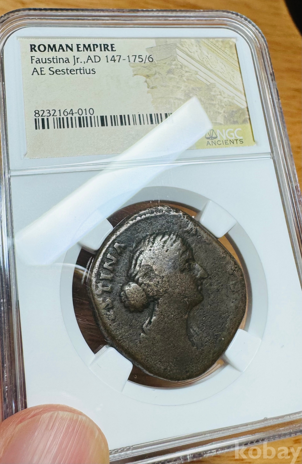 이 화폐는 로마 제국의 철학자 황제 마르쿠스 아우렐리우스(Marcus Aurelius) 의 황후이자,