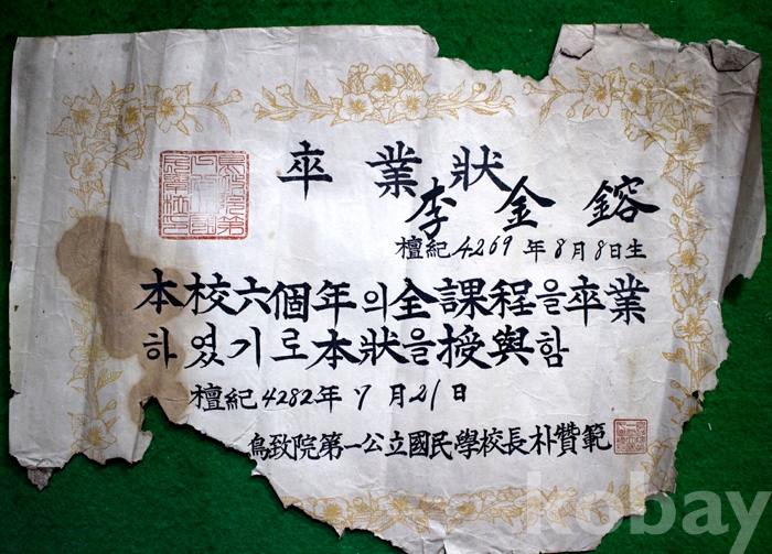 (상장 및 졸업장) 1949년 조치원제일공립국민학교의 졸업장