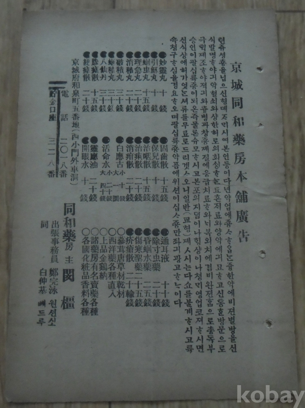 옛 경향잡지 속 간지로 끼워 넣던 전단지.