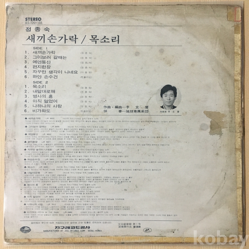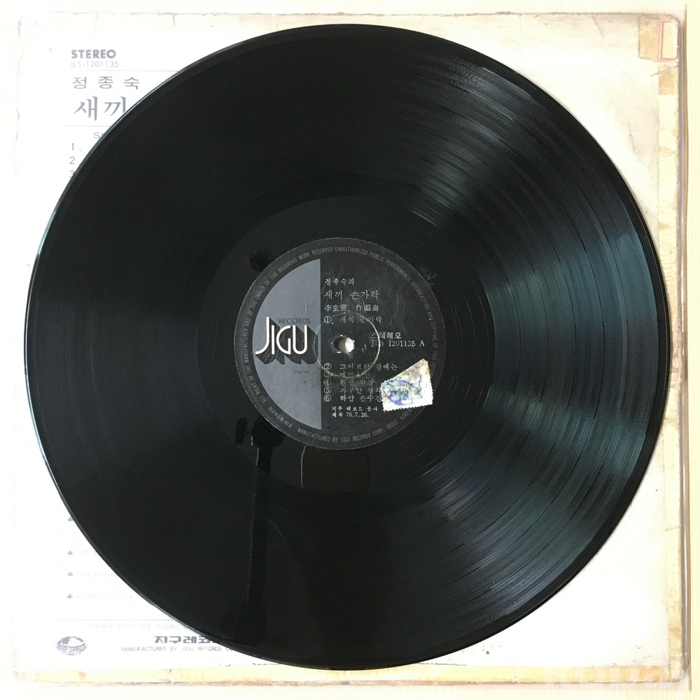 . 가요음반 대부분은 휘어짐이나 손상을 방지하기 위해 무지싱글자킷을 하나 더 사용하여 보관되었던 음반들입니다.