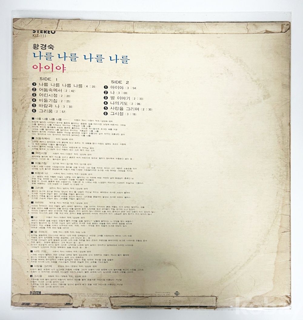 | 자켓상태 | EX : 약간의 마모, 모서리 찢김 존재 | 음반상태 | VG : 생활 기스 다수, 가벼운 노이즈 존재 | 발매정보 | 초반 | 가사지여부 | 무 |