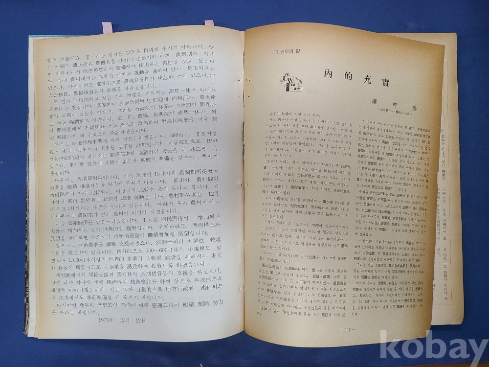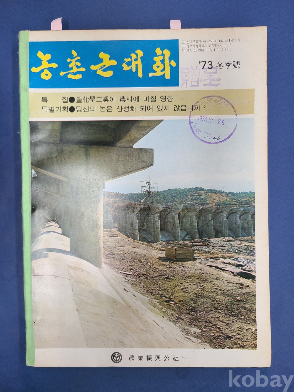 농촌근대화 ‘73 冬季號/농업진흥공사.224쪽/페이지가 본체와 분리됨,책등 보수 하였음