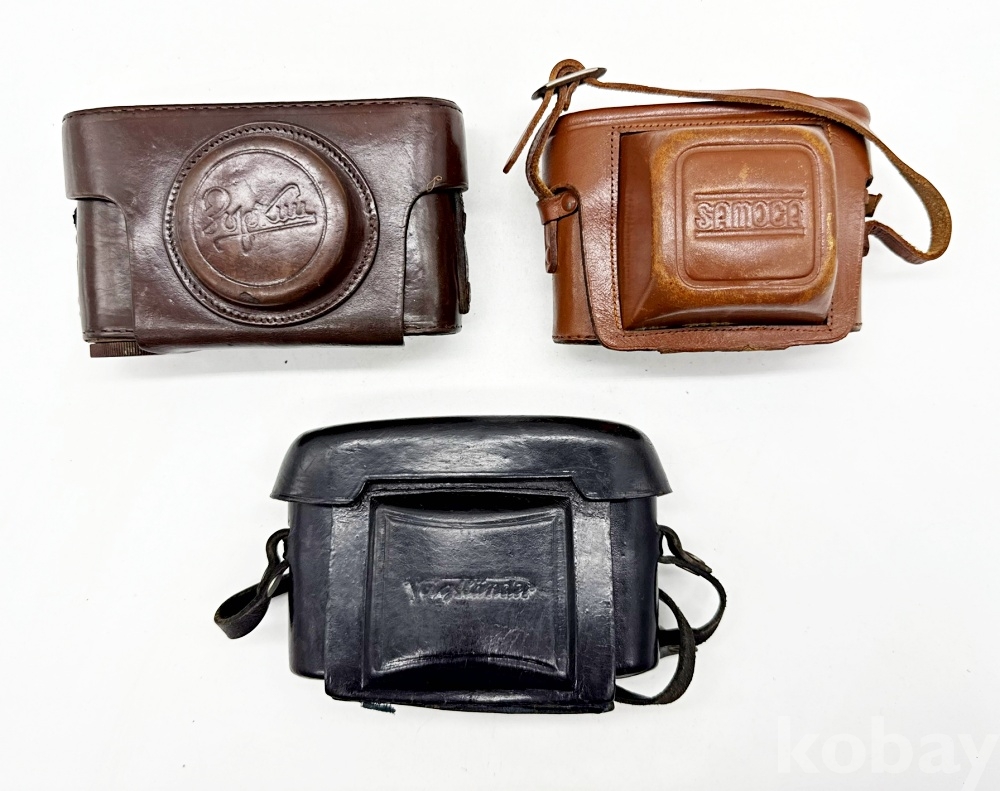 상품설명 | 1. 구소련 ZORIKI 카메라 가죽 케이스 / 14.5 x 8.5 cm / 똑딱이 부분 가죽 유실 2. 일본 SOMOCA 카메라 가죽 케이스 / 12 x 7.5 cm / 가죽 내부 낙서 및 렌즈 덮개 부분 실 풀림 있음 3. 독일 Voigtländer 카메라 가죽 케이스 / 14 x 8.5 cm / 안쪽 상단 가죽 뜯어짐.