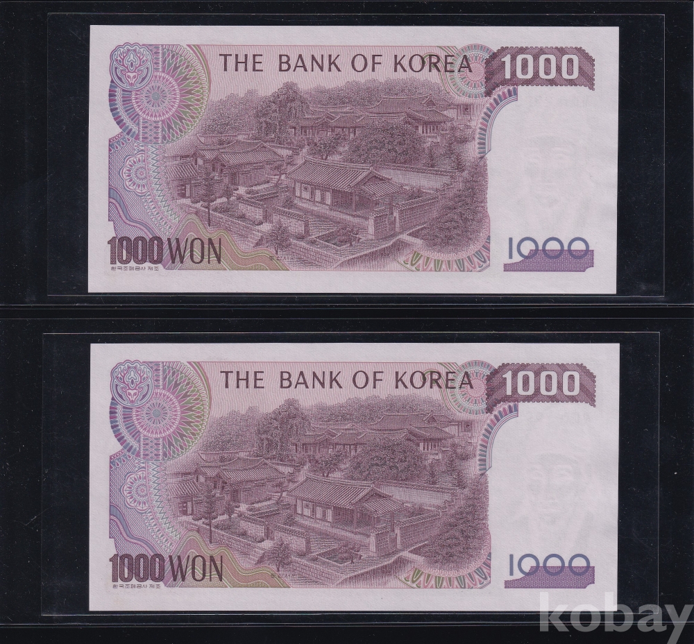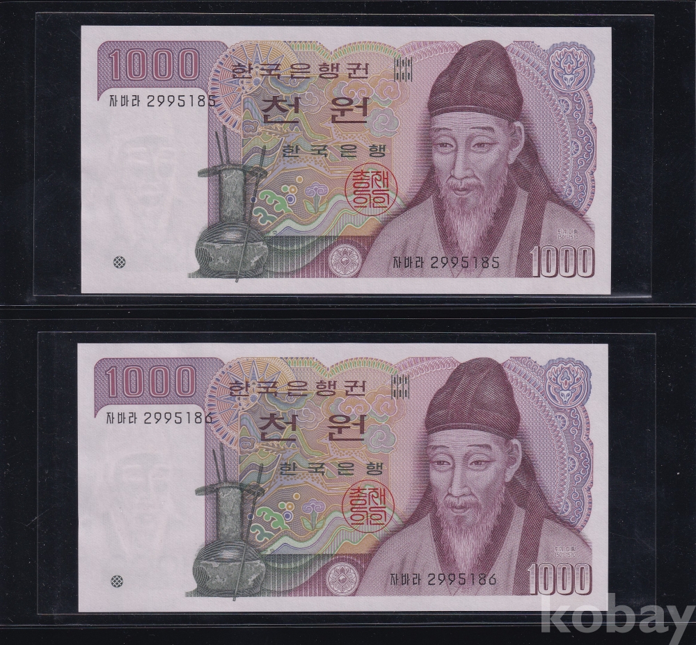 - 1983년 2차 천원 양성권 2포인트 2연번 미사용 지폐 - 2장 일괄