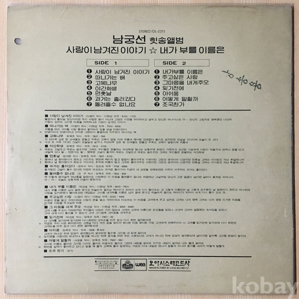 ⊙ 1981년 / 오아시스레코드 - OL-2375