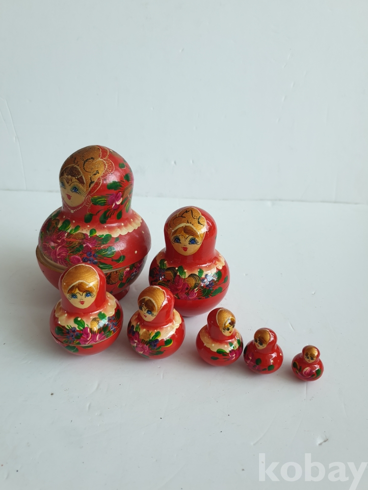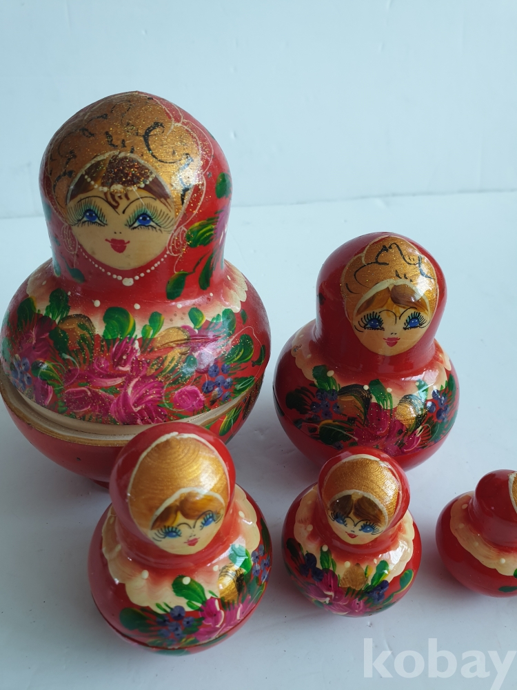 [천원경매] 10-065 마트료시카(사용감있음, 6개, 가장 큰 인형 14cm)