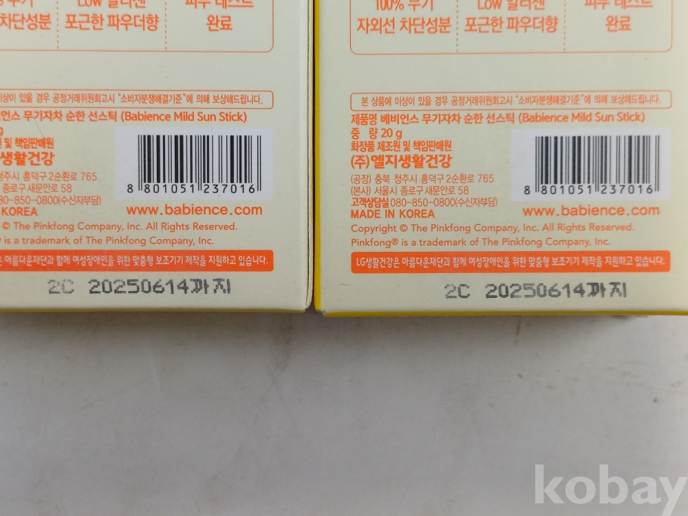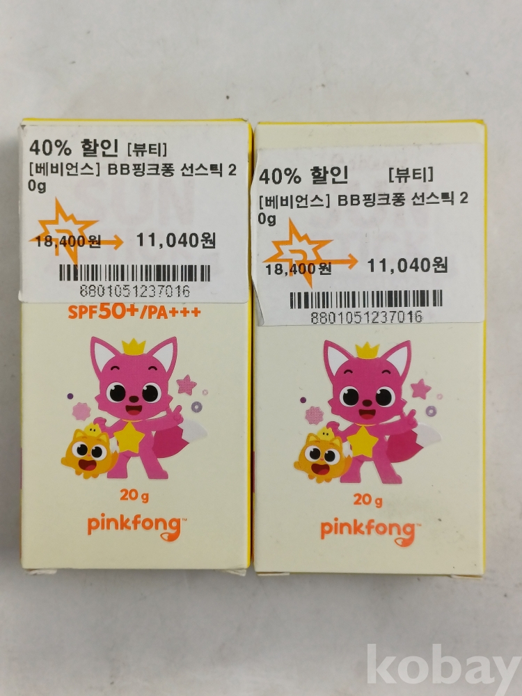 [천원!알면득템] A26 미개봉 베비언스 BB 핑크퐁 선스틱 2개 20g