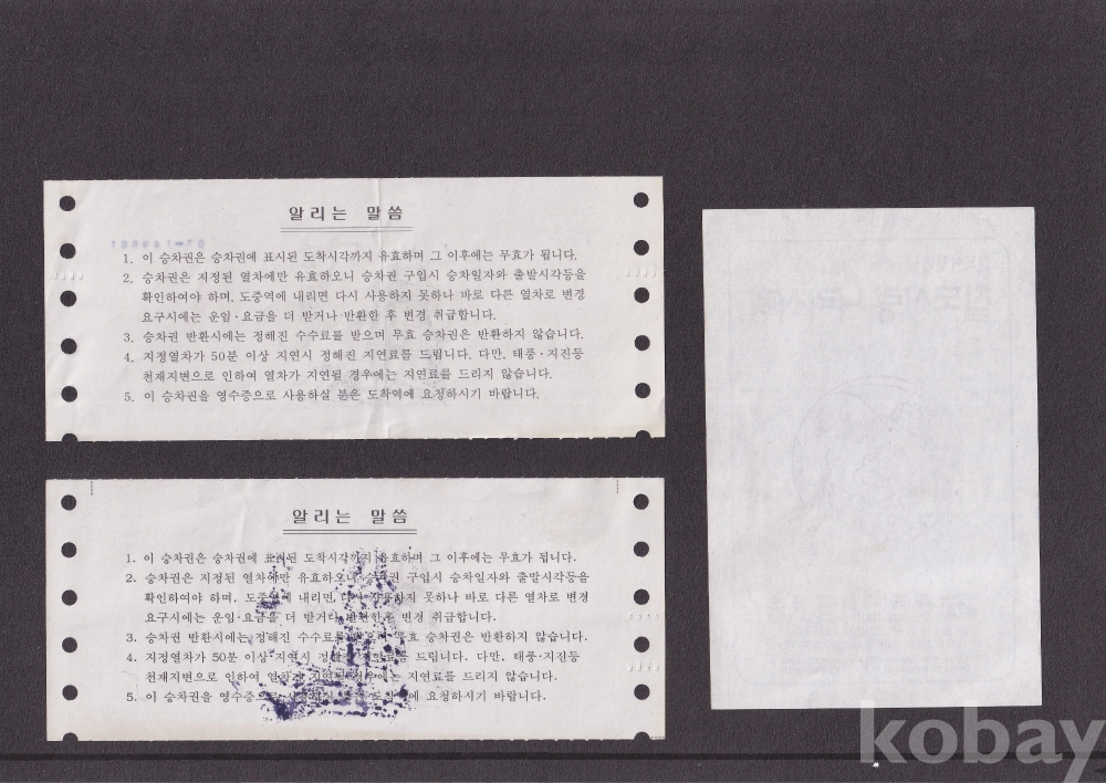 - 현재는 이용하지 않는 방식이고 과거 열차(버스 등), 이용 체계에 관한 근 현대사 자료 입니다.