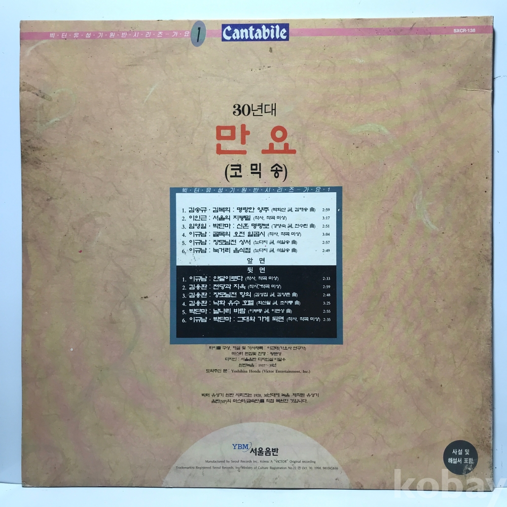 LP 35,650-85 30년대 만요 코믹송 빅터 유성기 원반 시리즈 . 94 서울 자켓 EX+ 알판 EX- EX+