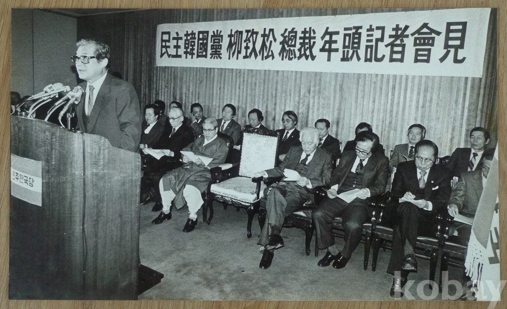1980년대 민주한국당 유치송 총재 년두 기자회견 사진