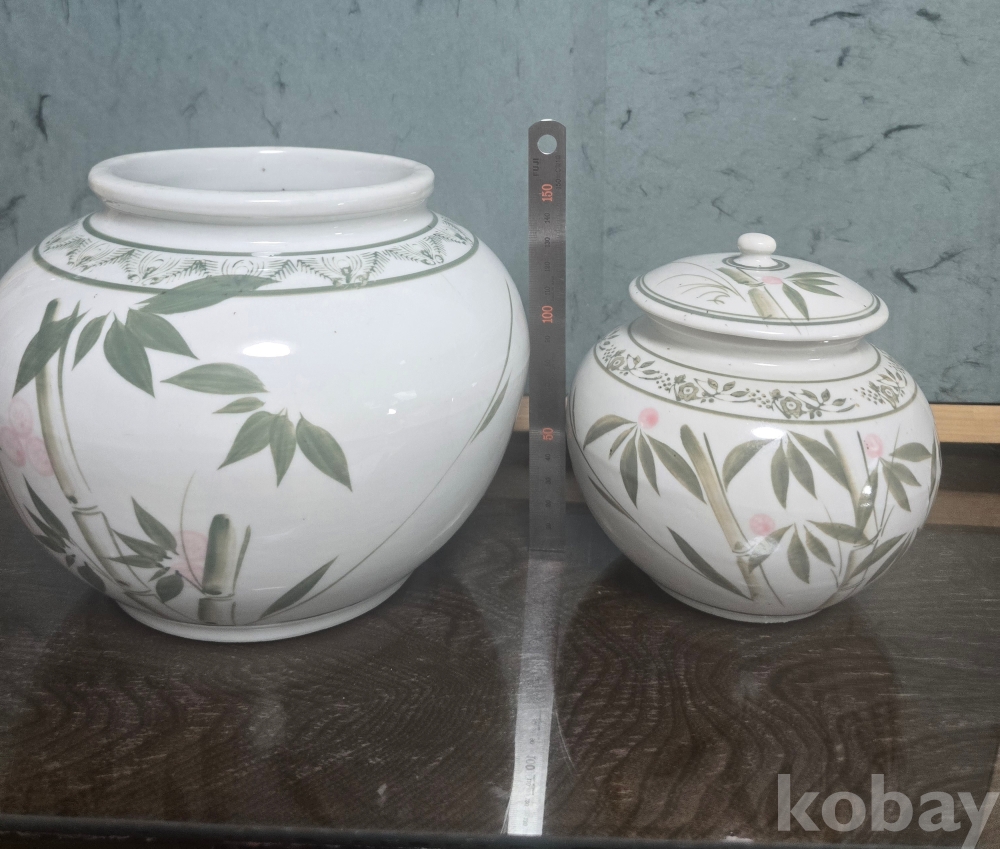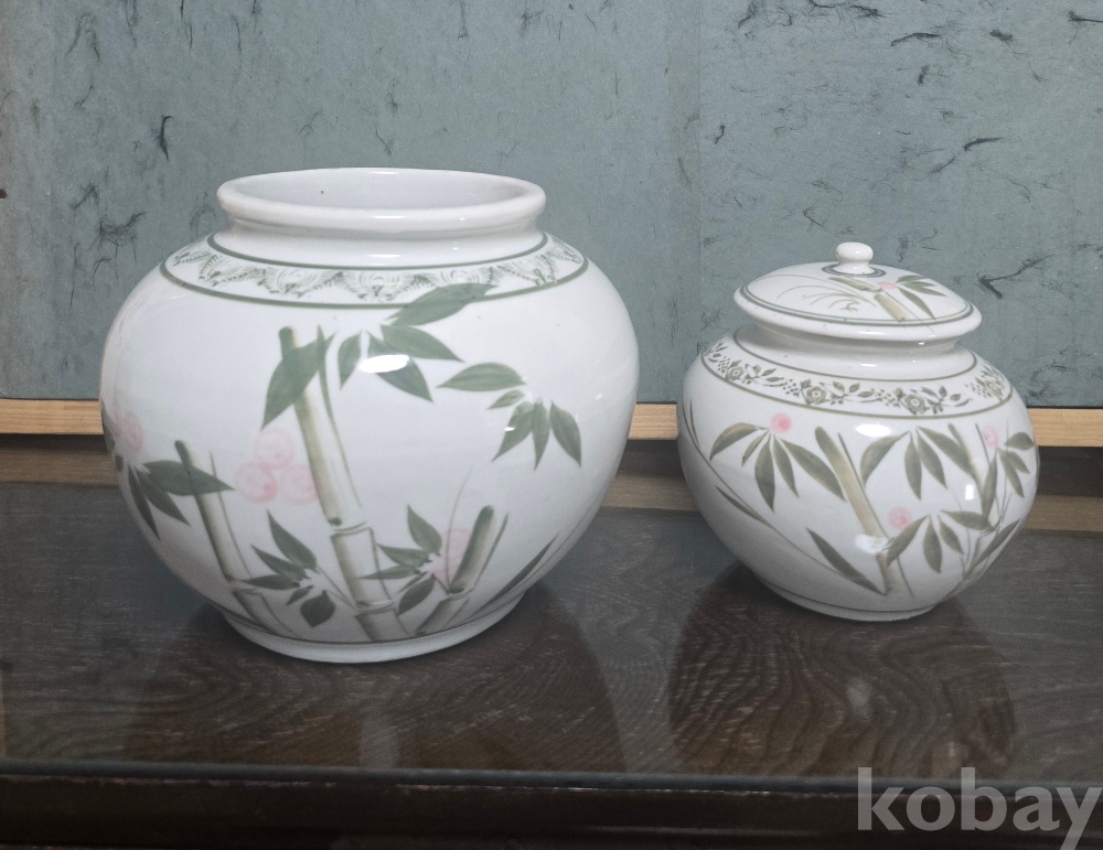 대나무 문양의 크고 작은 호 도자기 입니다.