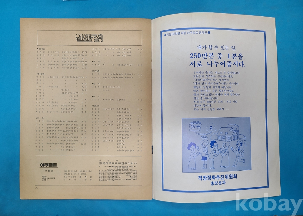 私報 야쿠르트. 1980년11월호. 제1권제20호. 월간 한국야쿠르트유업주식회사 발행, 36쪽