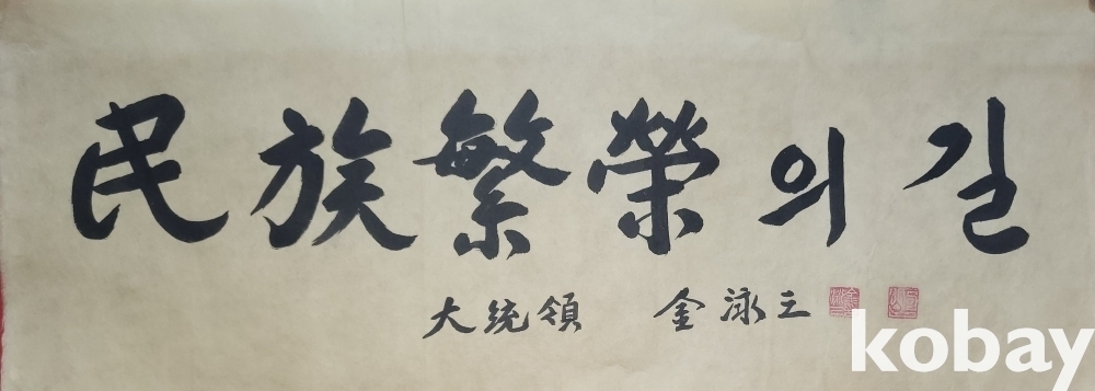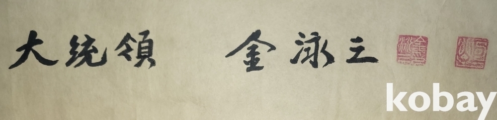 대통령 김영삼 수결이 보이는 종이에 먹(墨) 서예입니다