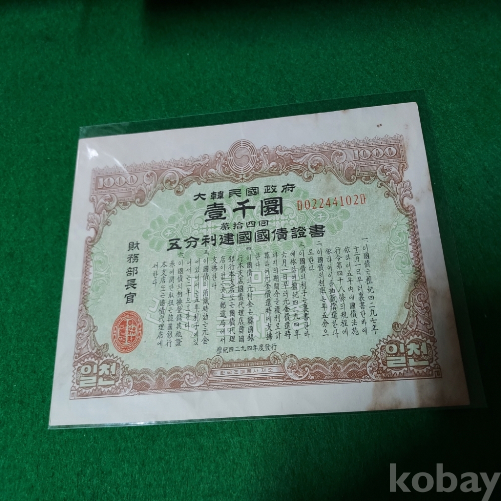 대한민국 1961년 건국채권 14회 1000환 사용제