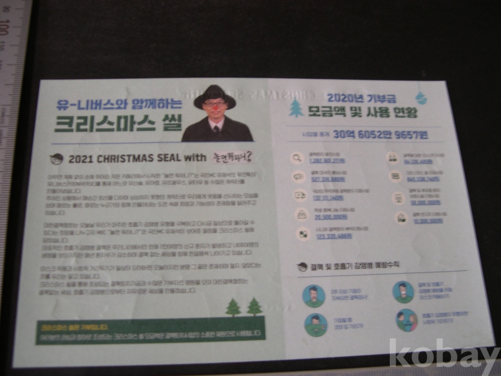4. 크리스마스 씰은 이면 풀의 상태가 고르지 않고, 규격도 일정치 않은것이 많습니다.