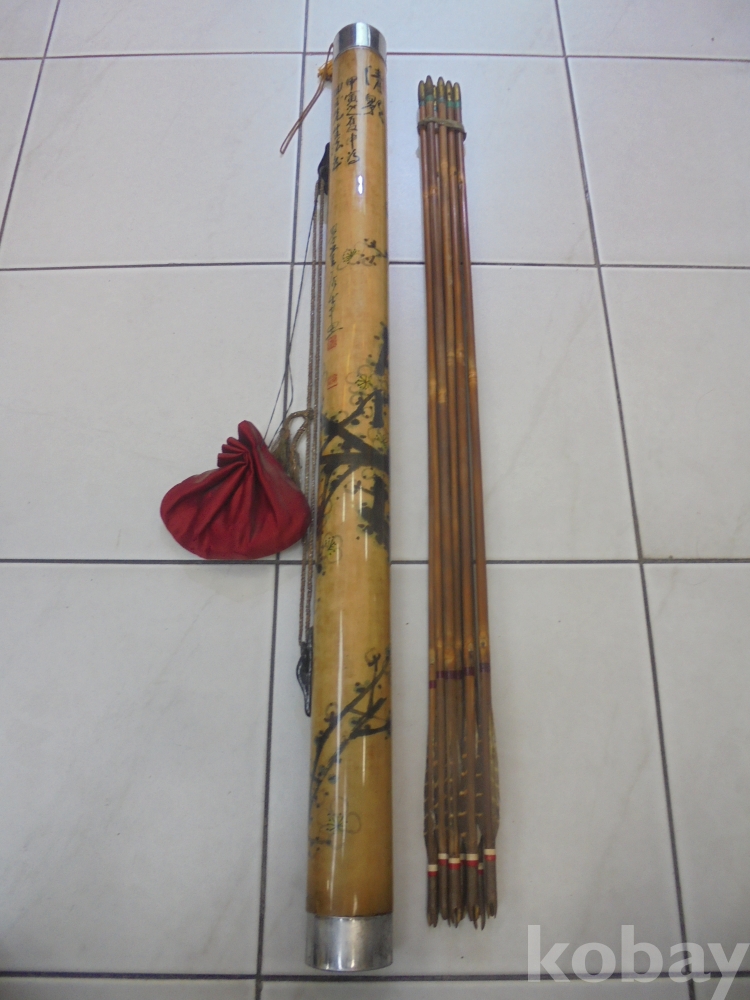 비범하게 보여지는 고품격의 매화 손그림이 돋보이는 활통과 화살. 깍지. 보호대. 주머니 셋트 입니다.