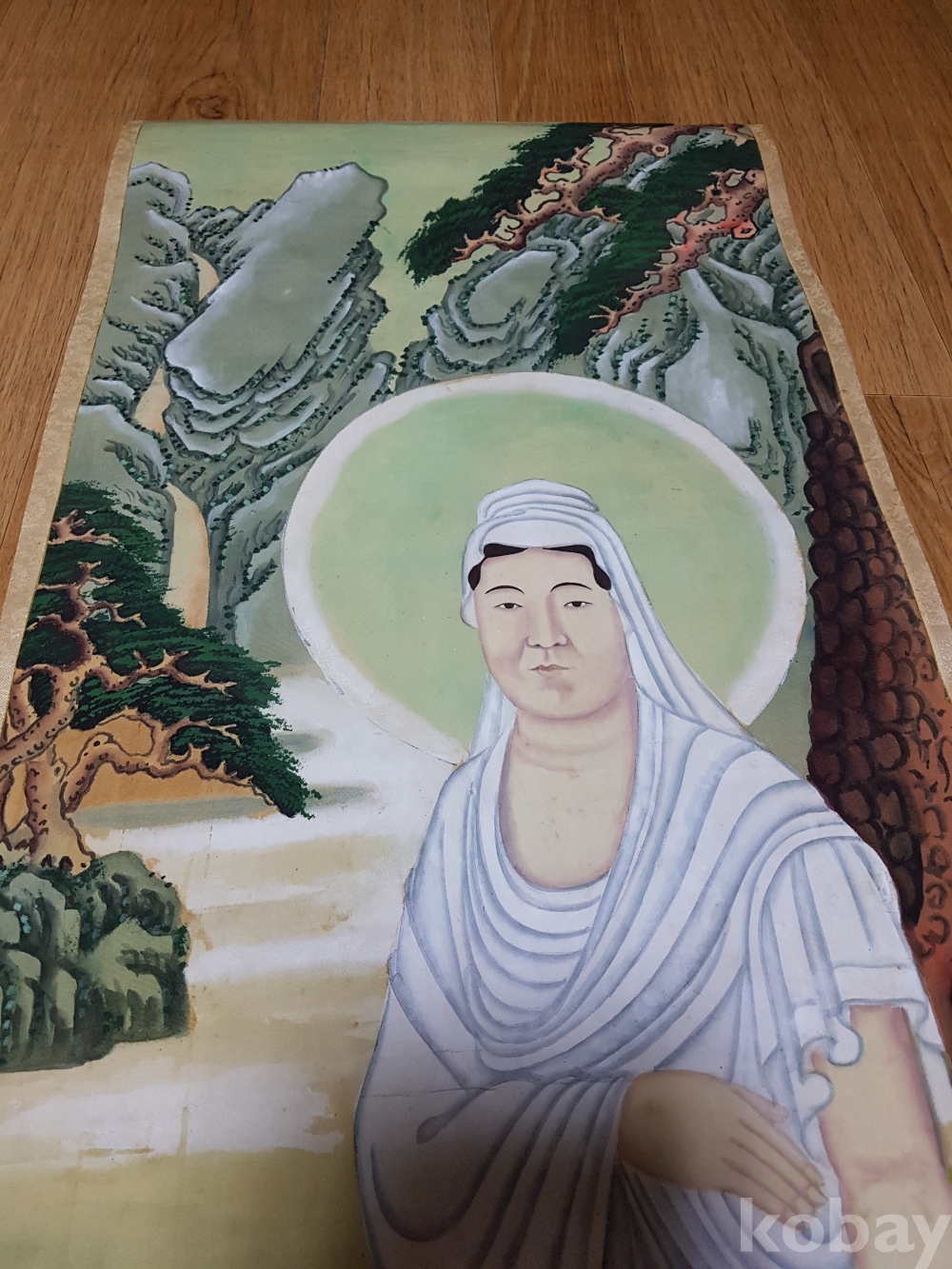 일제시대 불화 부처님과 동자 천바탕 작품 입니다