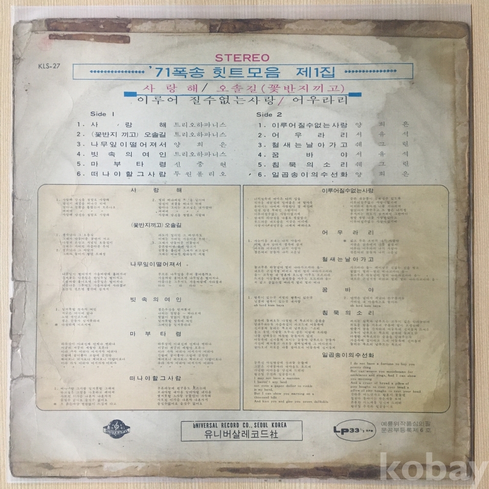 . 가요음반 대부분은 휘어짐이나 손상을 방지하기 위해 무지싱글자킷을 하나 더 사용하여 보관되었던 음반들입니다.